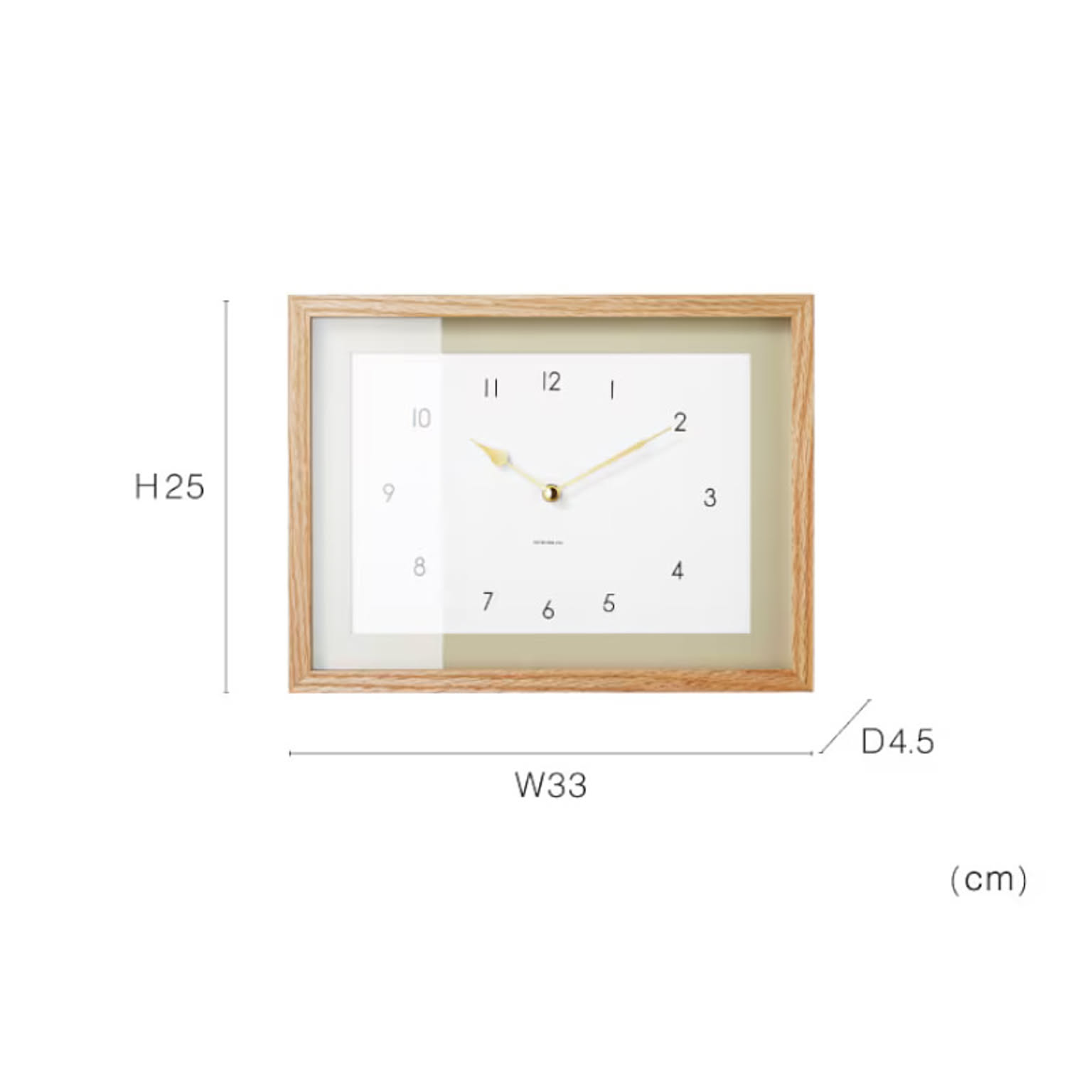 ◆寸法 約W33×H25×D4.5cm ◆素材 木、ガラス、MDF、プラスチック 重 量 1.1kg ◆機能 スイープムーブメント 単3電池 (別売) 壁掛け用木ネジ付き