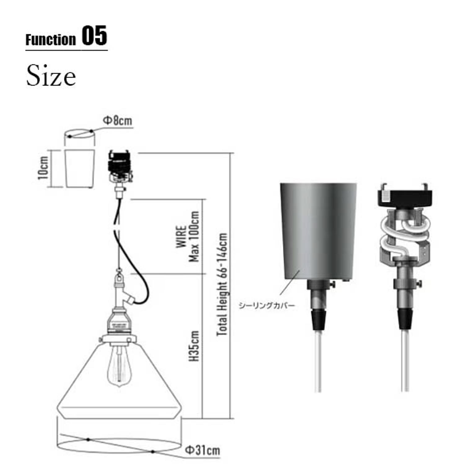 アルミダイキャスト製のこだわり抜いたパーツのみで構成された アシンメトリーなソケットユニットを使用し、やや大振りなクリアガラスと組み合わせレトロな雰囲気を。存在感を感じながらも圧迫感がなく、インダストリアルな雰囲気からオーガニックな雰囲気まで多様なインテリアに合わせやすくなっています。※本製品は引掛けシーリング取付になります。ダクトレールへの取り付けは別途アダプタが必要です。