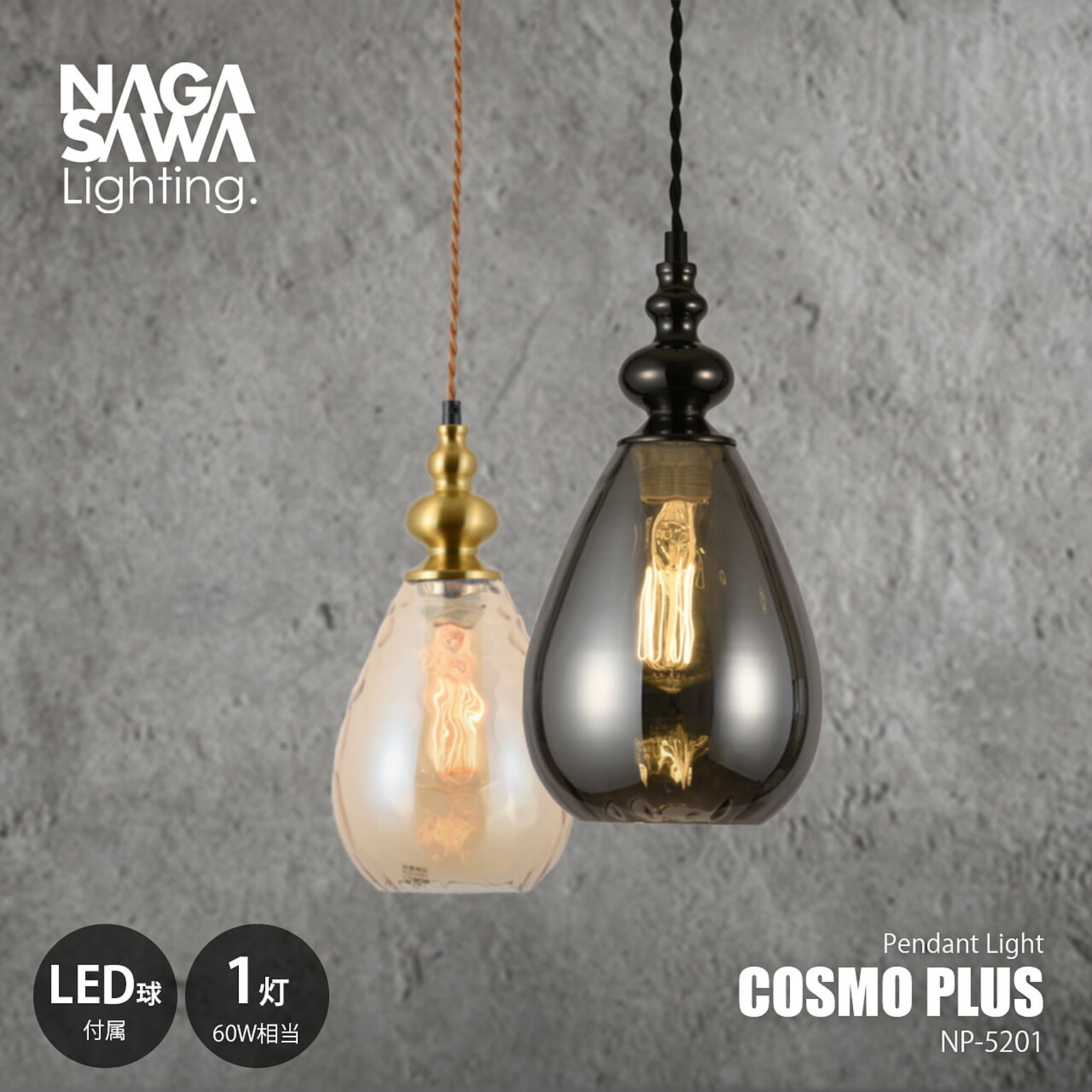 NAGASAWA Lighting 長澤ライティング Cosmo PLUS コスモプラス ペンダントライト (LED球付属) NP-5201 / ペンダントランプ 天井照明 LED対応 60W相当×1