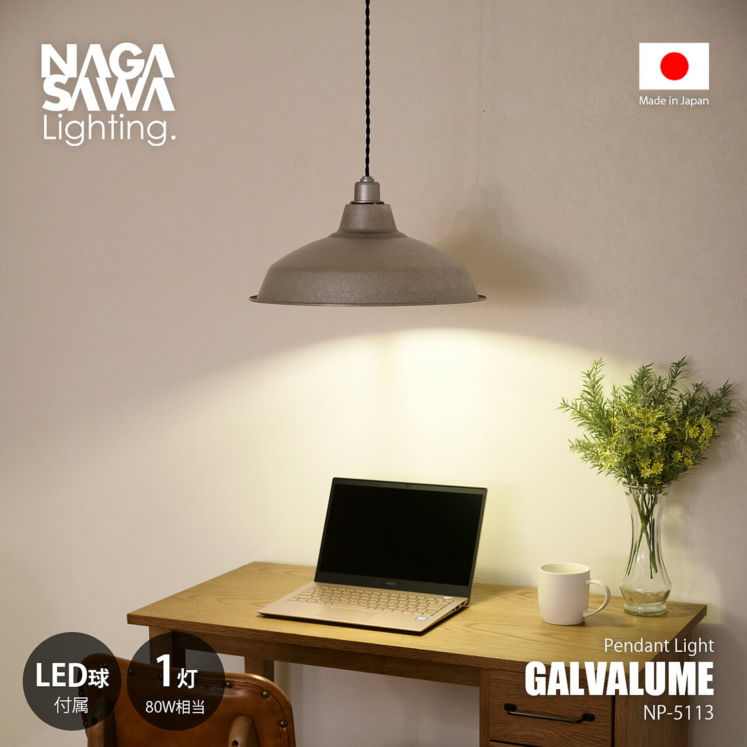 NAGASAWA Lighting 長澤ライティング GALVALUME ガルバリウム ペンダントライト (LED球付属モデル) NP-5113 / ペンダントランプ 天井照明 80W相当×1灯