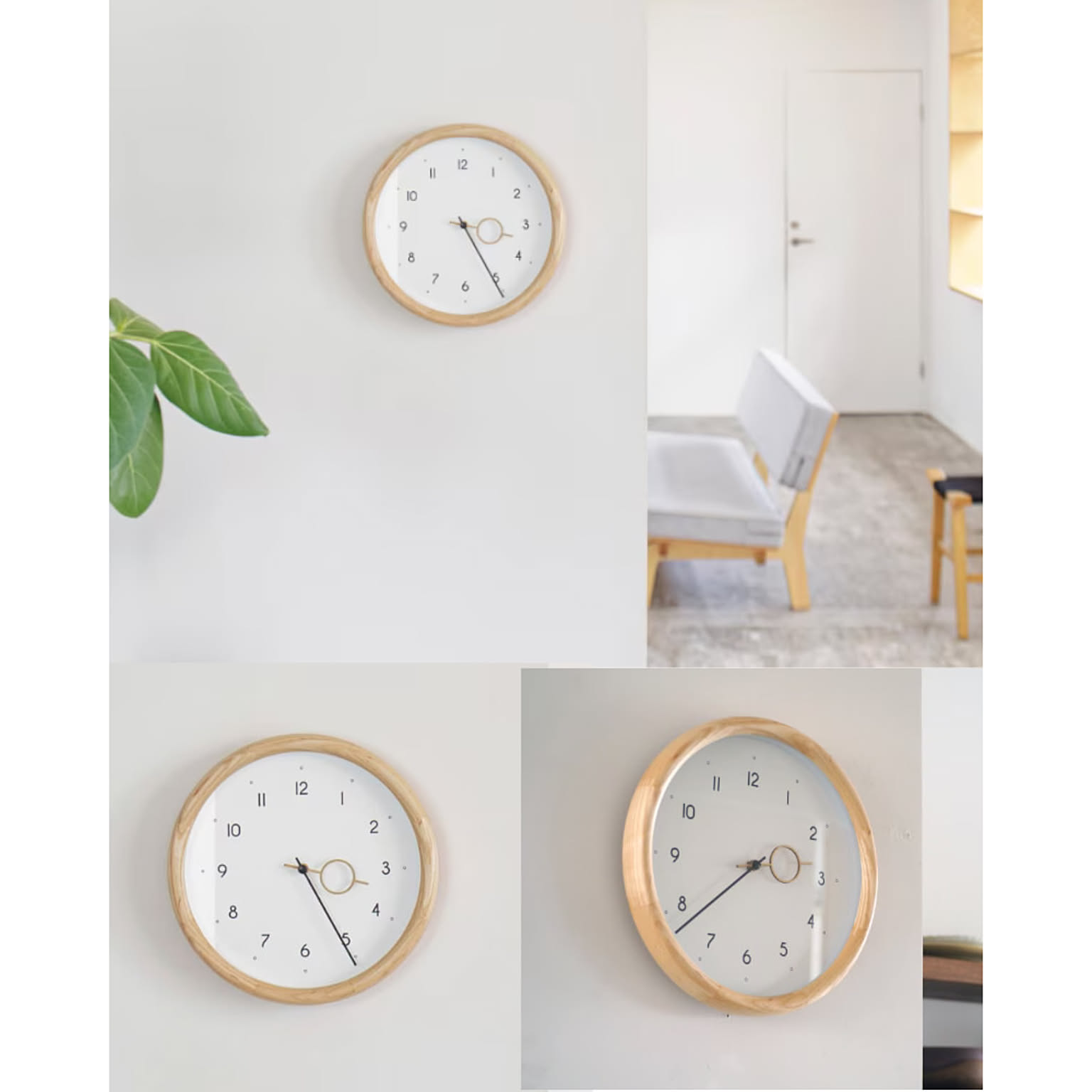 ◆寸法 約φ28.5×D5cm ◆素材 木、ガラス、MDF、プラスチック 重 量 0.8kg ◆機能 スイープムーブメント 単3電池 (別売) 壁掛け用木ネジ付き