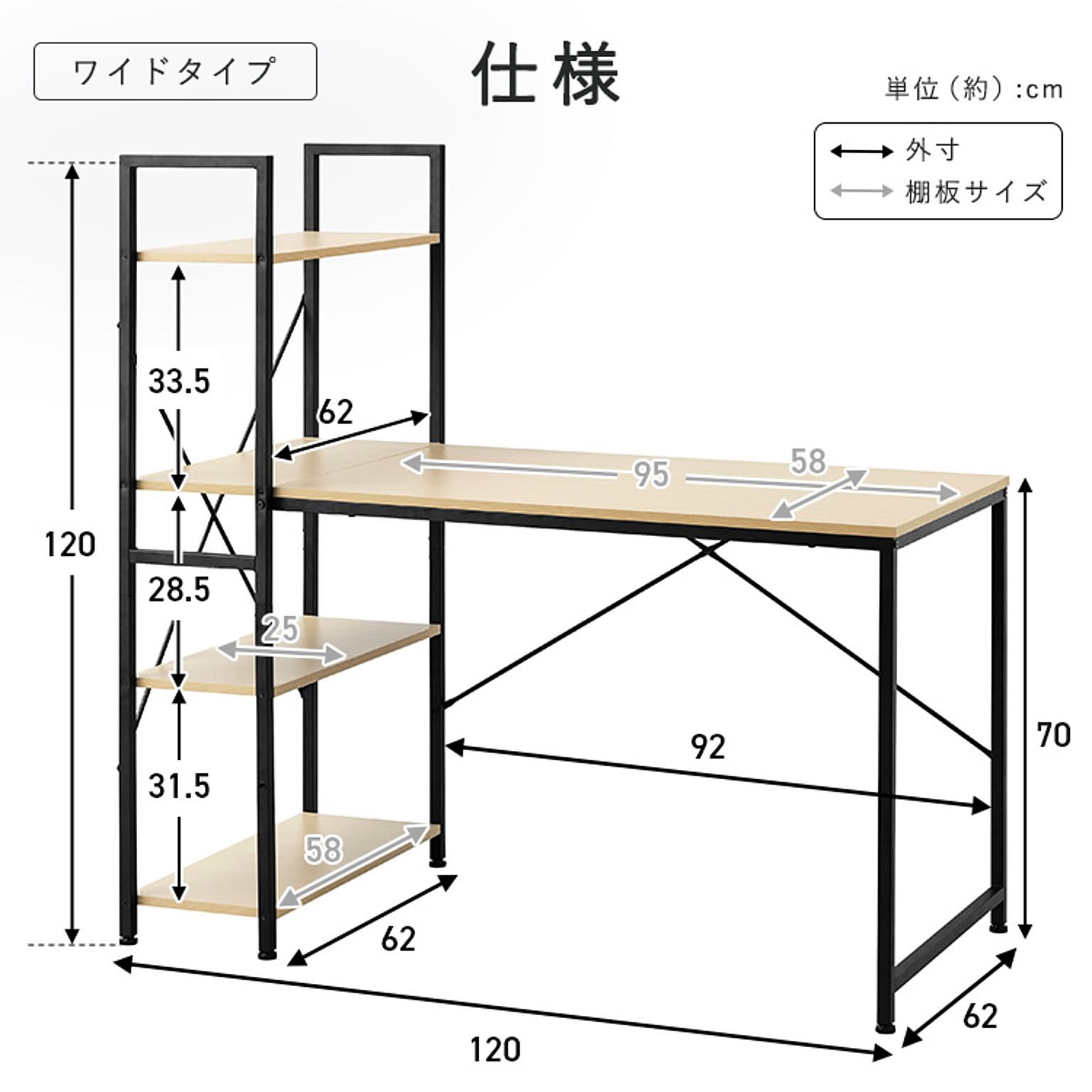 幅約120×奥行約62×高さ約120