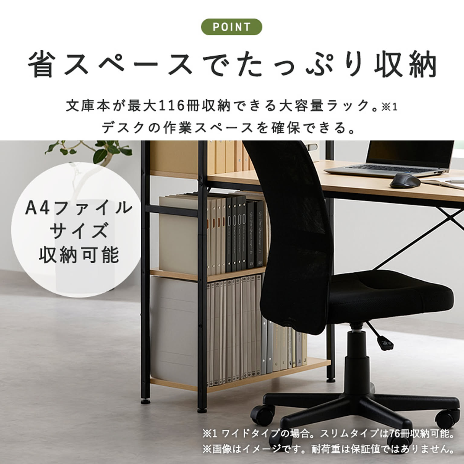 ラックにはデスク周りの小物や本などが収納できます。