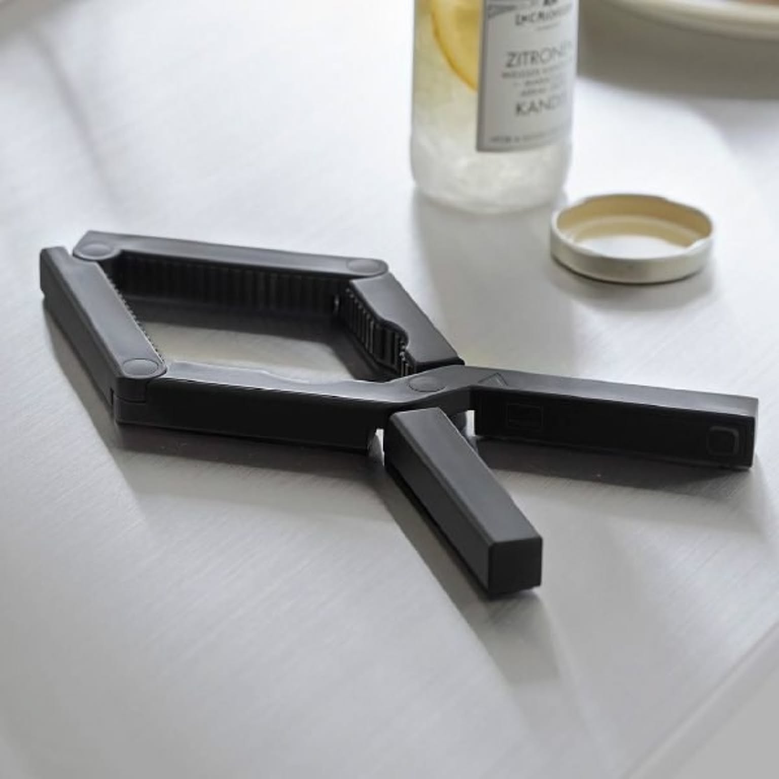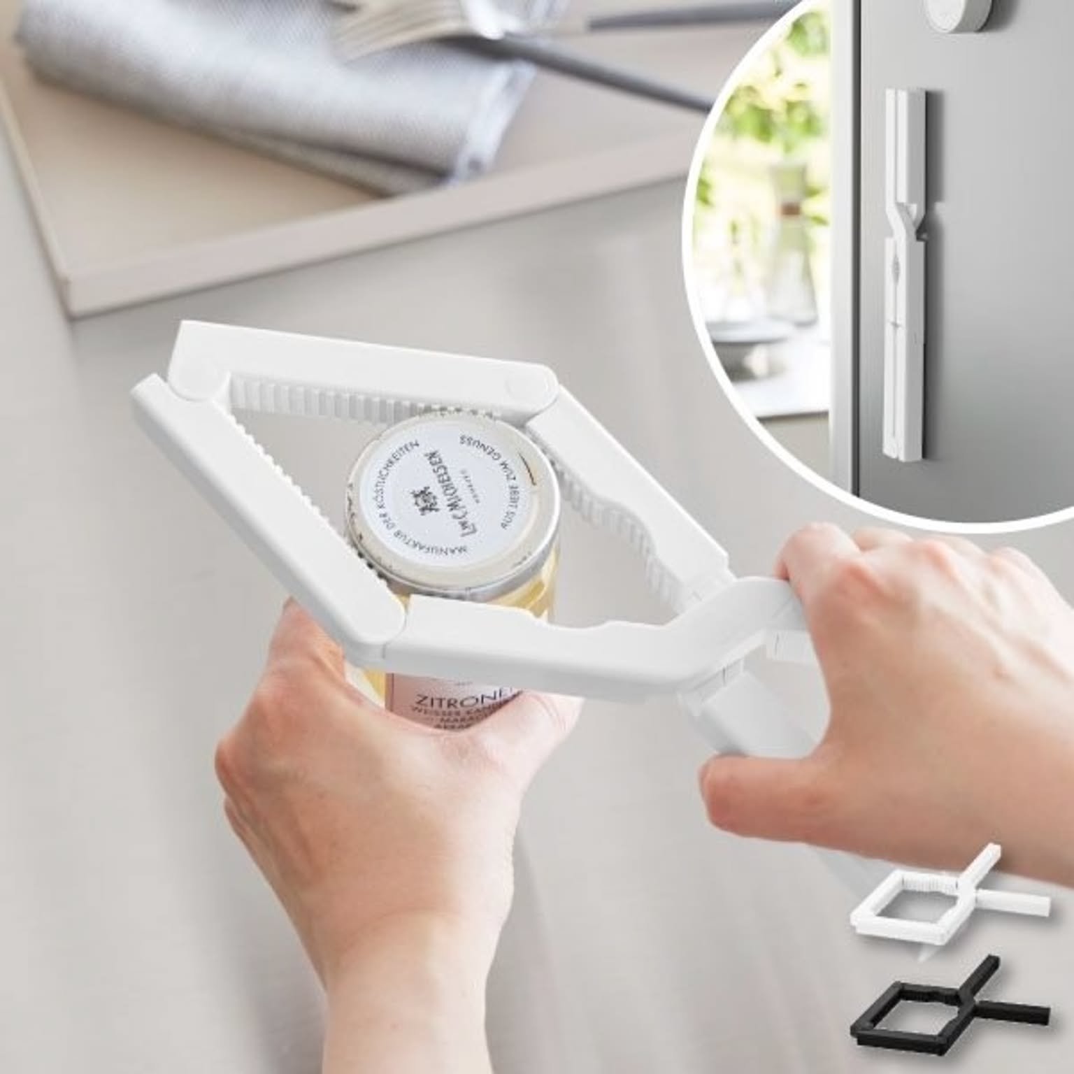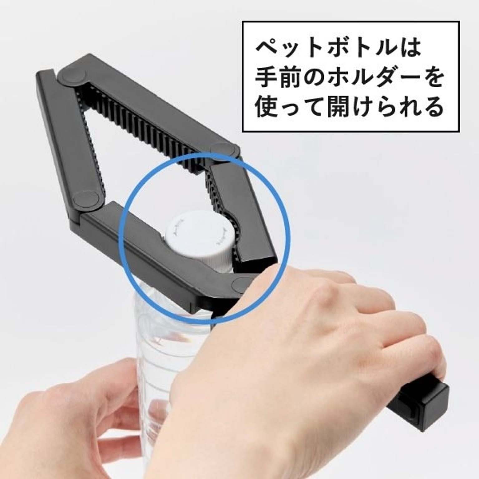 ビンやペットボトルの蓋を開けるときに便利な、towerシリーズのキャップオープナーです。ハンドルを握って回すだけで、スムーズに蓋を開けることができます。軽い力で簡単に蓋を開けられるので、高齢者の方や力の弱い方にも安心してお使いいただけます。キャップオープナーのハンドルは、高齢者の方でも握りやすく、蓋を開けるときの負担を軽減します。ネイル中の方も、爪を傷つける心配がないのでおすすめです。キャップオープナー内側の凸凹で蓋をしっかりホールドするため、使い心地も快適です。こちらのキャップオープナーは、さまざまなサイズの蓋に対応しています。ジャムやサプリメントなどのビンの蓋やペットボトルの蓋など、高齢者の方が日常的に使うアイテムに対応しているのは嬉しいですね。ハンドルには、開ける方向がわかりやすいマーク付きで、高齢者の方も迷わず開けられます。マグネットが内蔵されており、そのまま冷蔵庫などに貼り付けて収納できます。キャップオープナーは、畳むととてもスリムなので、場所を取らずに収納できます。シリコーンの滑り止め付きでずり落ちにくく、マグネットが付く壁面にしっかり固定できます。モノトーンのシンプルなデザインのキャップオープナー。ホワイトとブラックの2色からお選びいただけます。山崎実業 タワーシリーズのおしゃれなボトルオープナー、蓋開け便利グッズをお探しの方にもぴったり。毎日の生活で「蓋が固くて開けられない」という高齢者の方のお悩みを、無理なく解消してくれるキャップオープナー。高齢者の方はもちろん、家族みんなで使える便利なアイテムです。