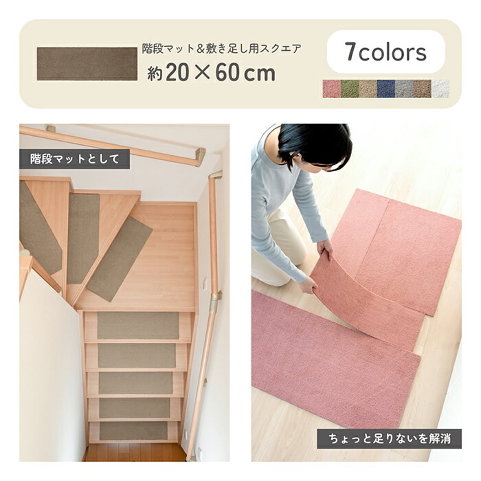 マット らくケア どこでもカーペット 敷き足し スクエア 20x60cm カキウチ