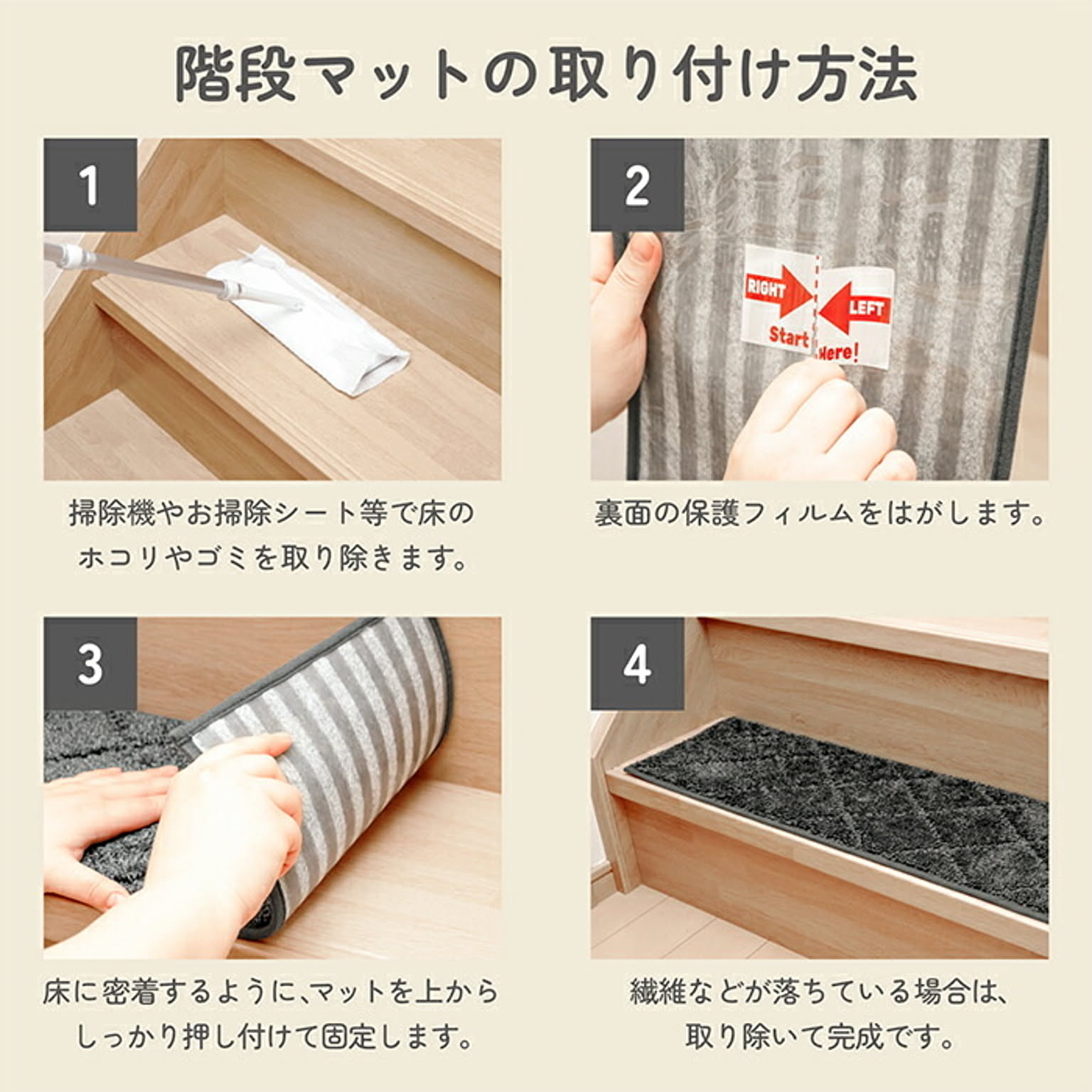 階段マット ふわピタ 5枚入 22x70cm カキウチ
