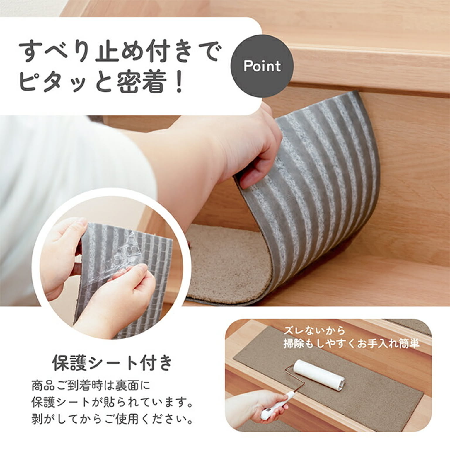階段マット らくケア 5枚入 20x60cm カキウチ