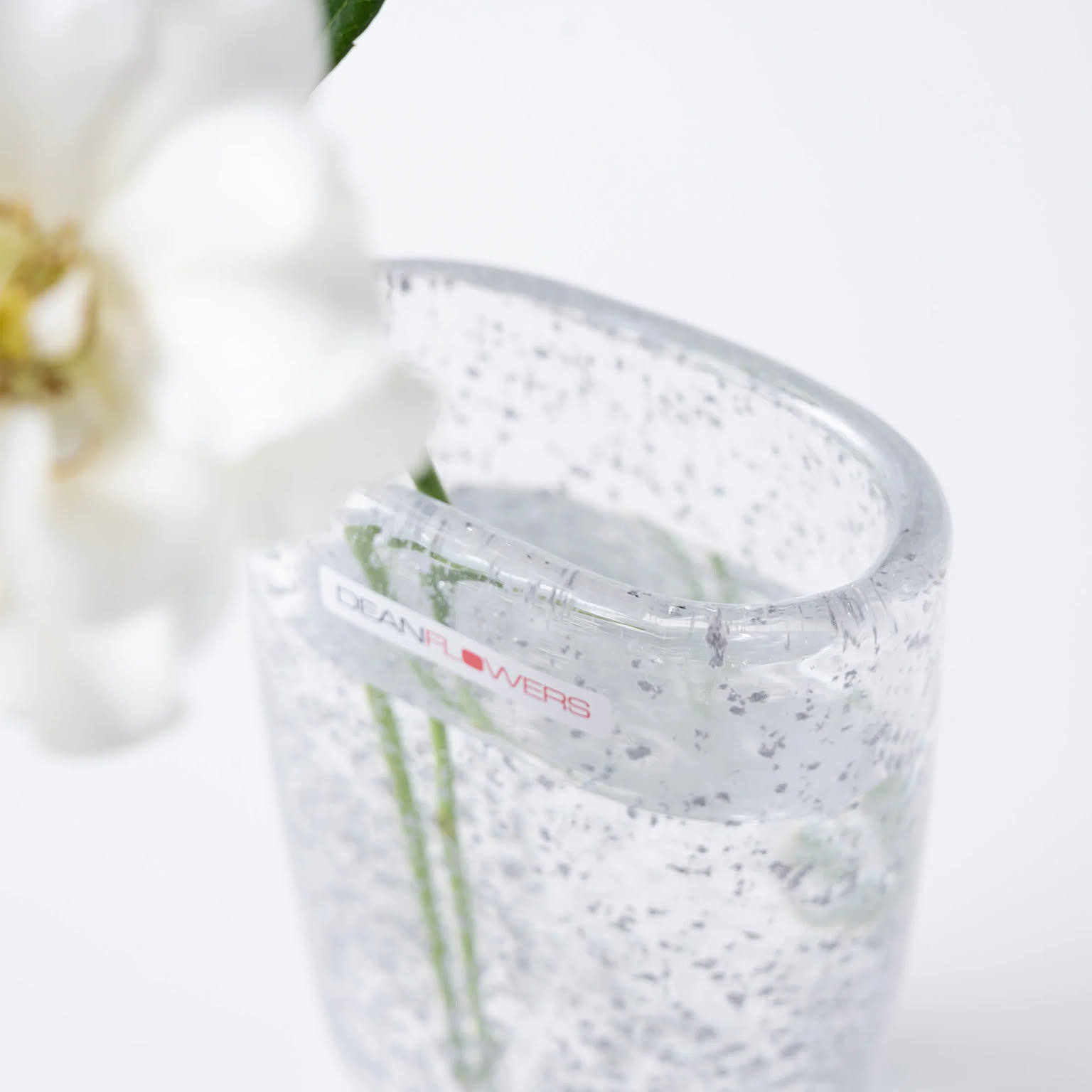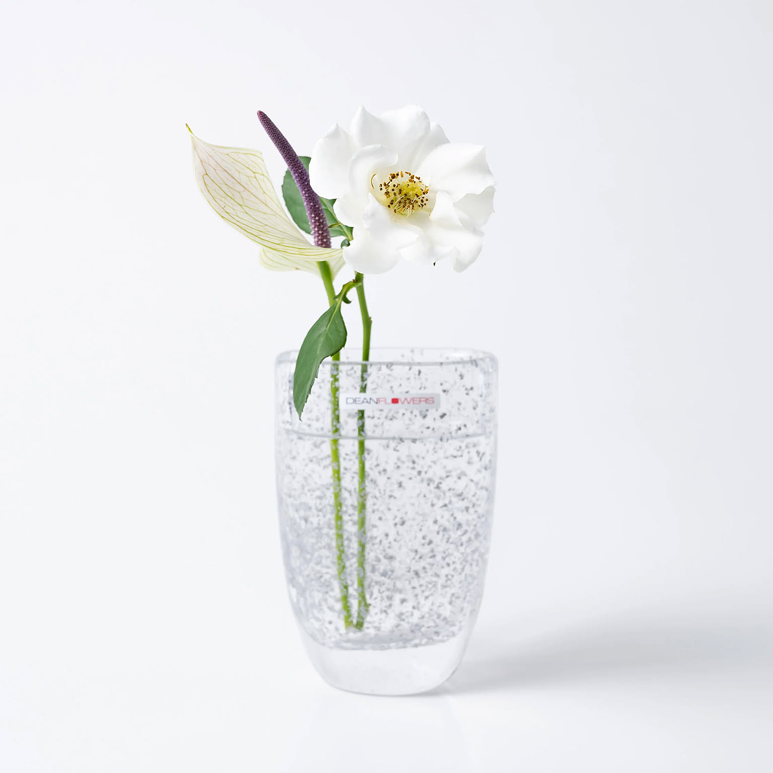 横に広がるフォルムが特徴の「Julien」。花を片側に寄せて活けると様になります。「Julien」は「Joe」よりも小ぶりで、高さ約13cmとコンパクトですが、適度な重さがあるので丈の長い花もしっかりと支えます。