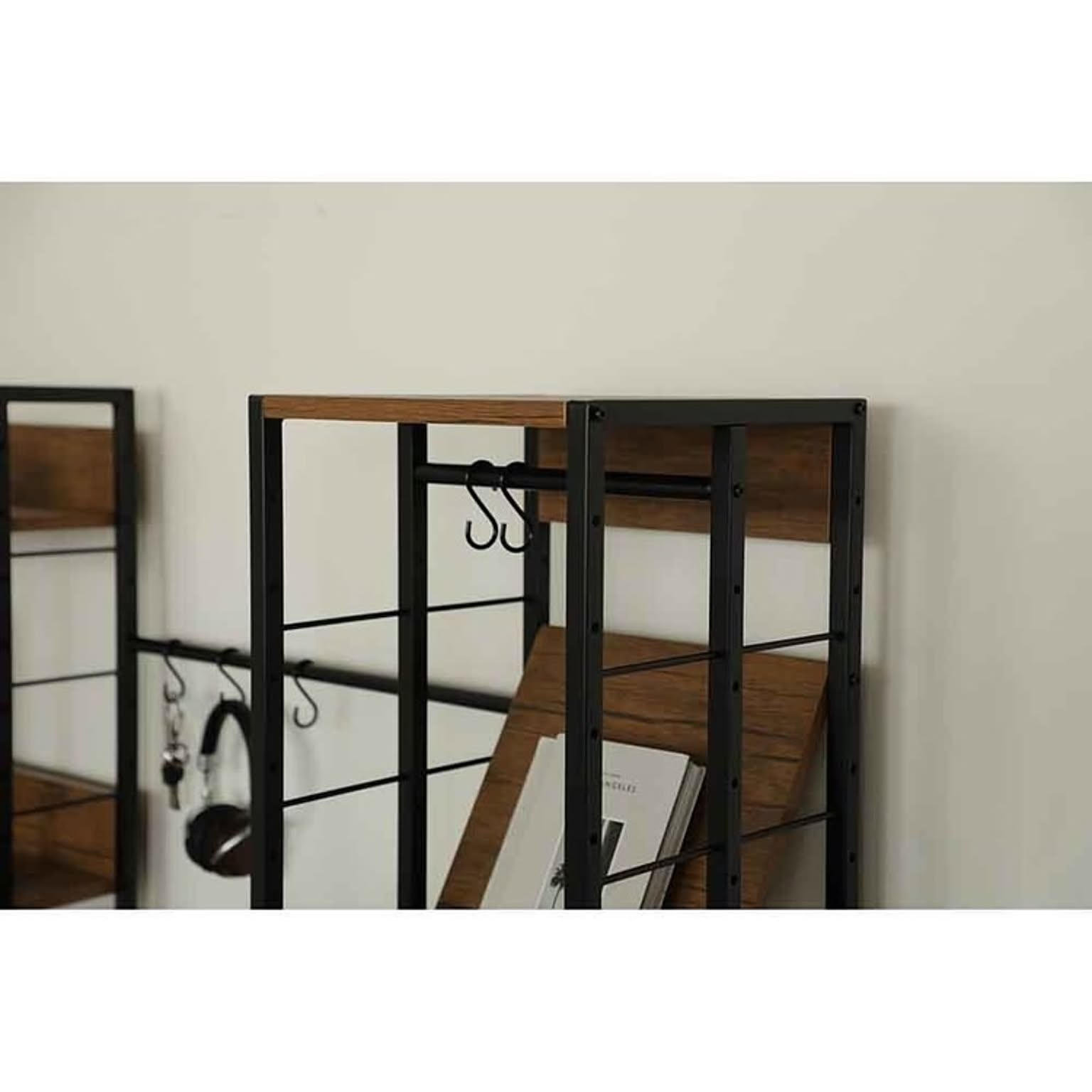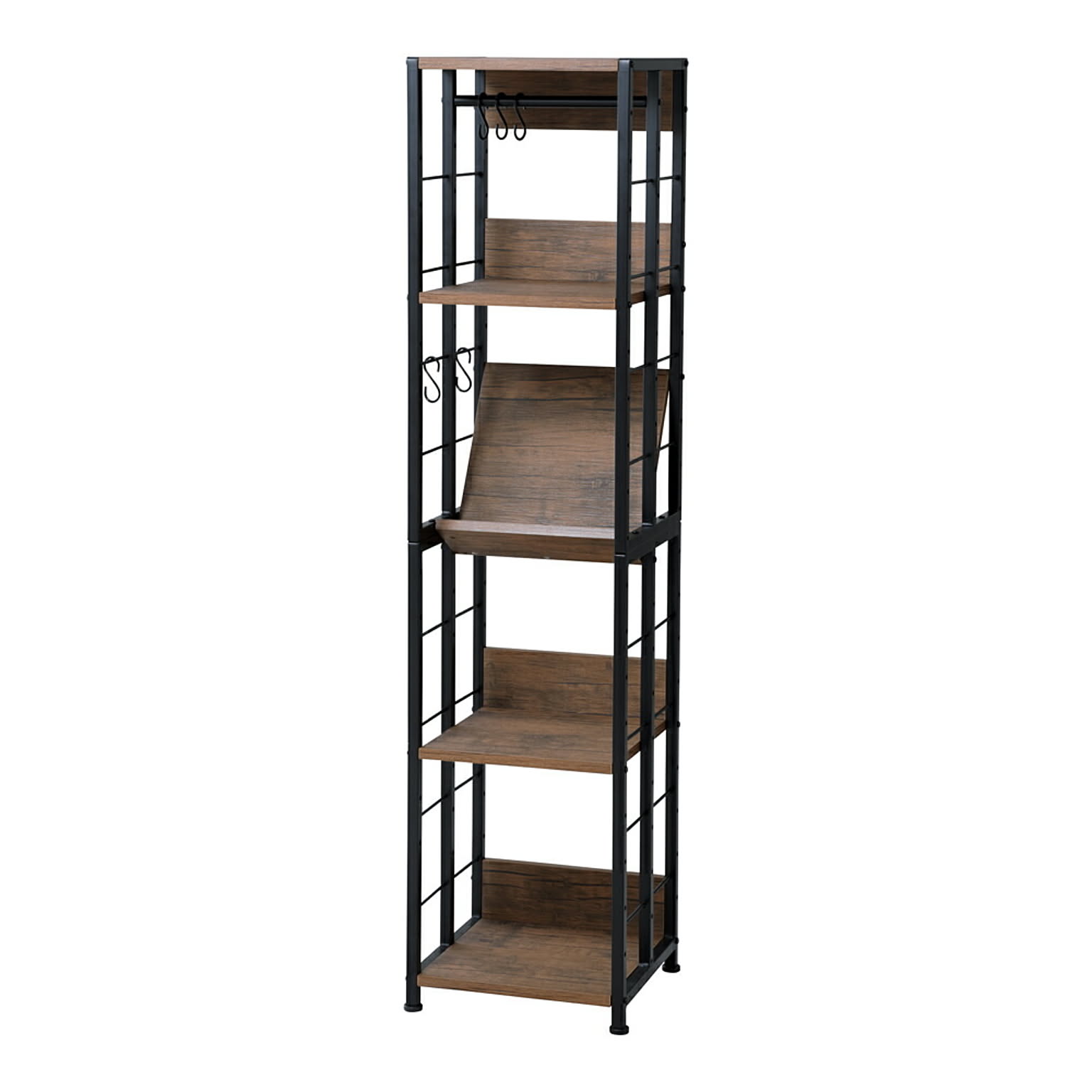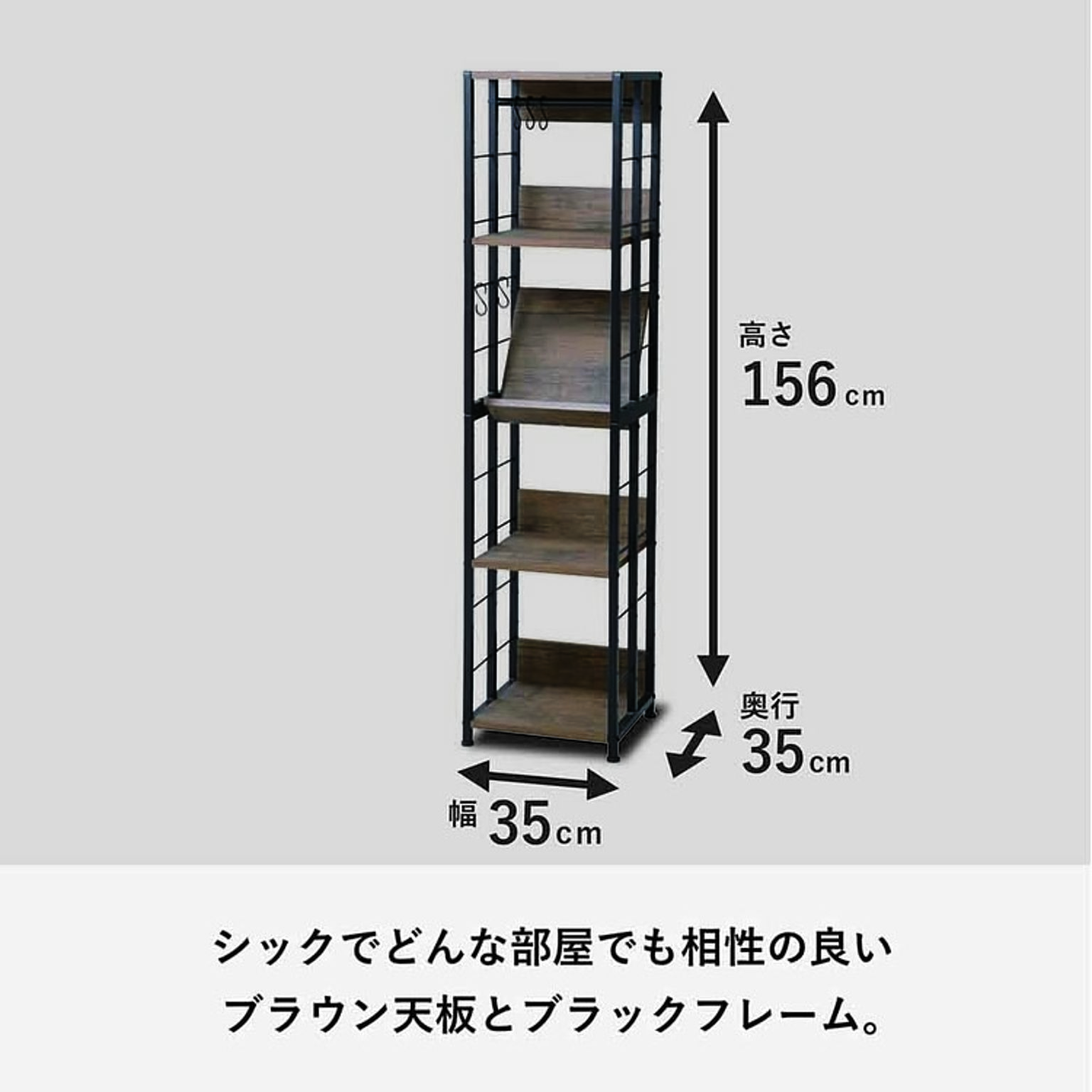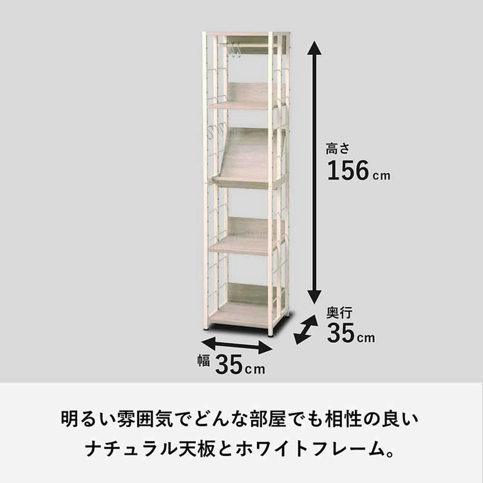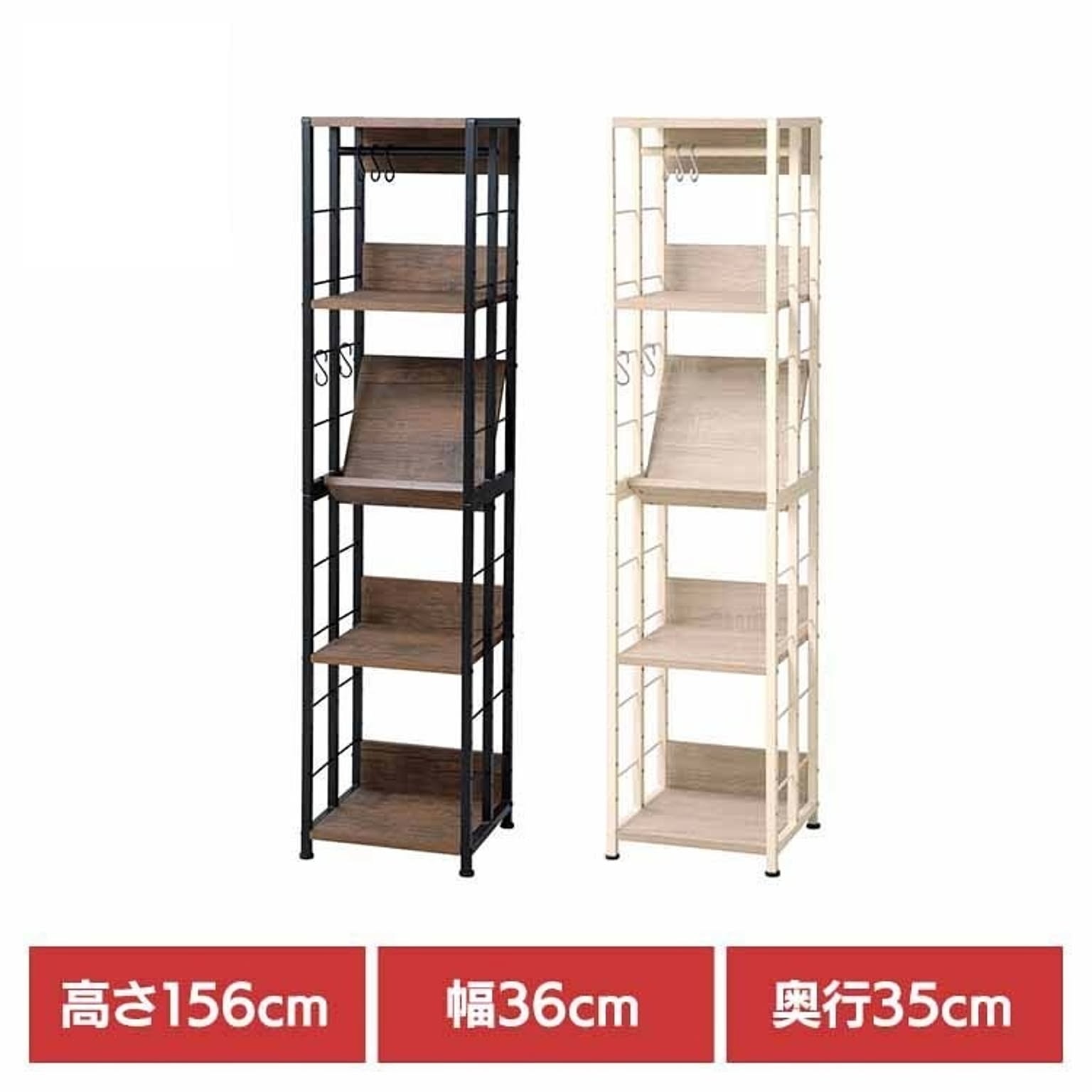 生活シーンや使い方に合わせて、5つの棚の高さや向き、角度を組替可能なマルチラック。 ★お客様組立★ ●商品サイズ(cm) 幅約36×奥行約35×高さ約156 ●商品重量 約16kg ●材質 棚板:MDF(t18mm厚)PVC貼り フレーム:スチール粉体塗装 ●耐荷重 全体:60kg 棚:10kg