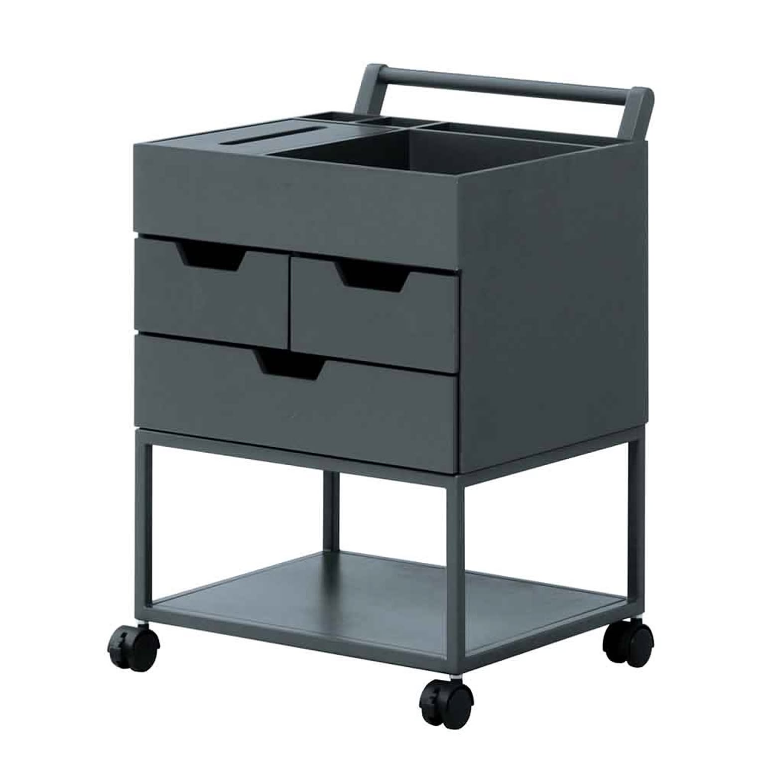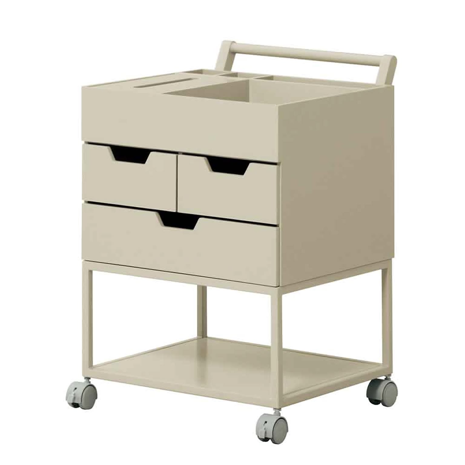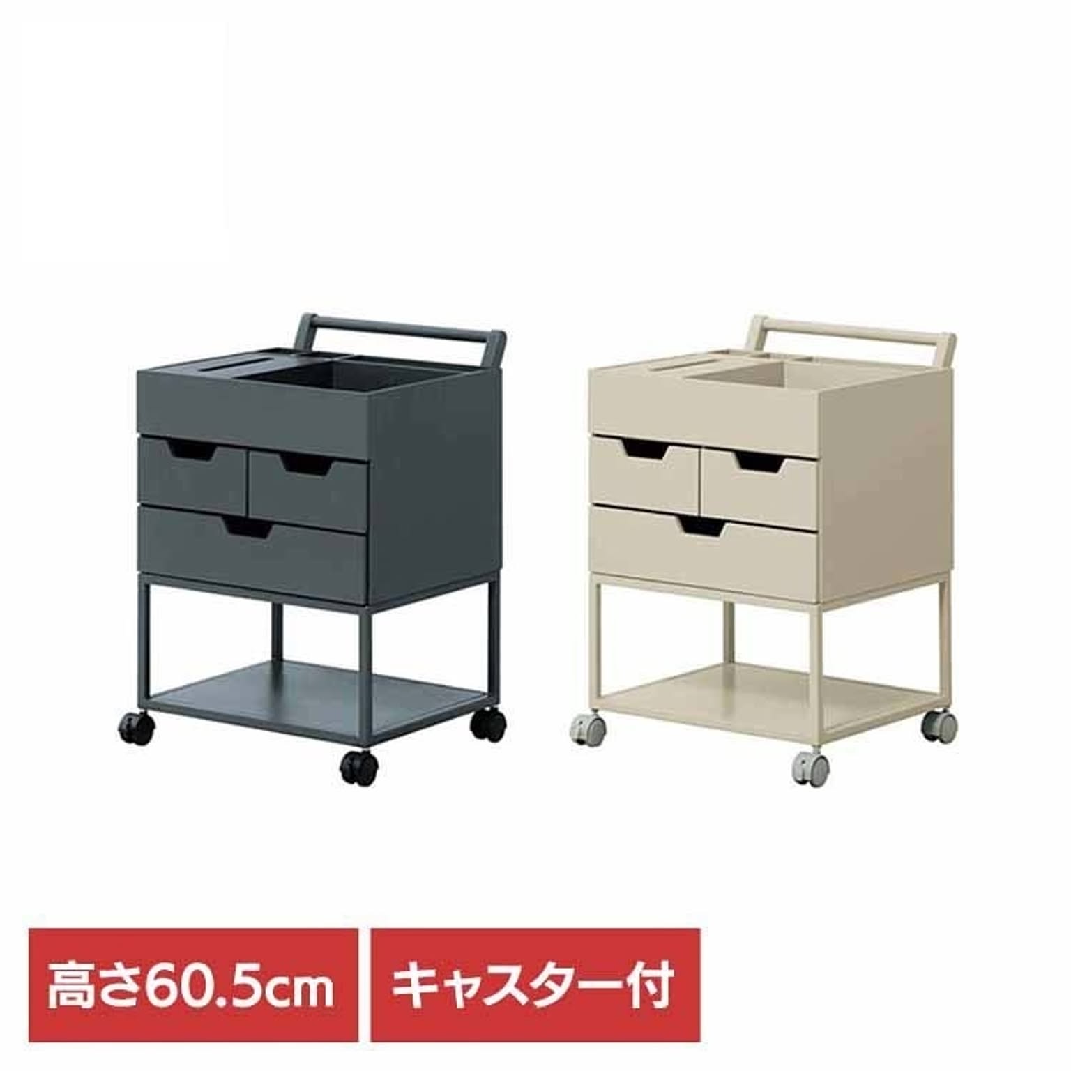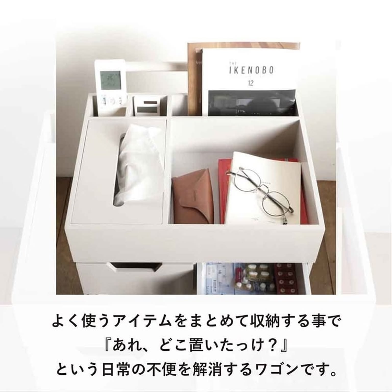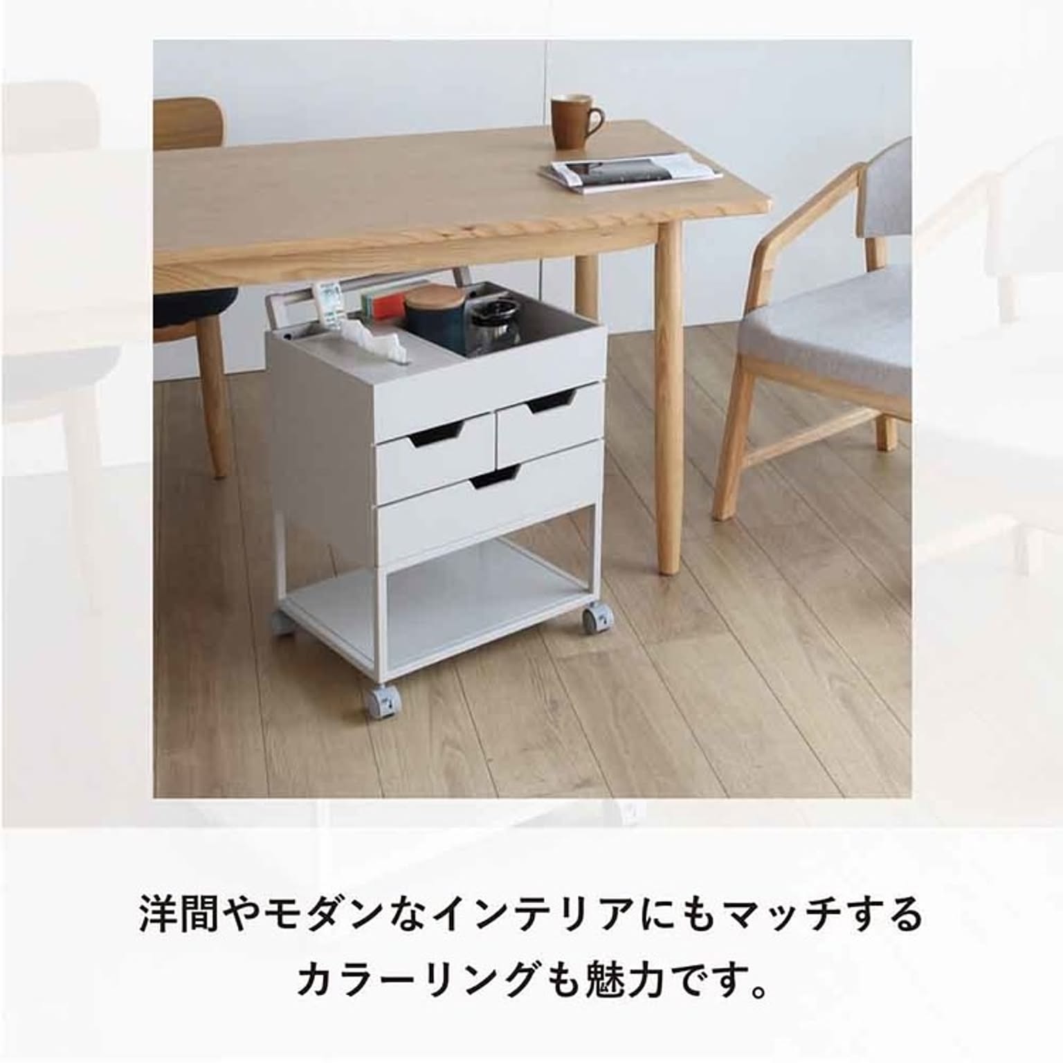 大小3つの引き出しや、ボックスティッシュも収納可能です。