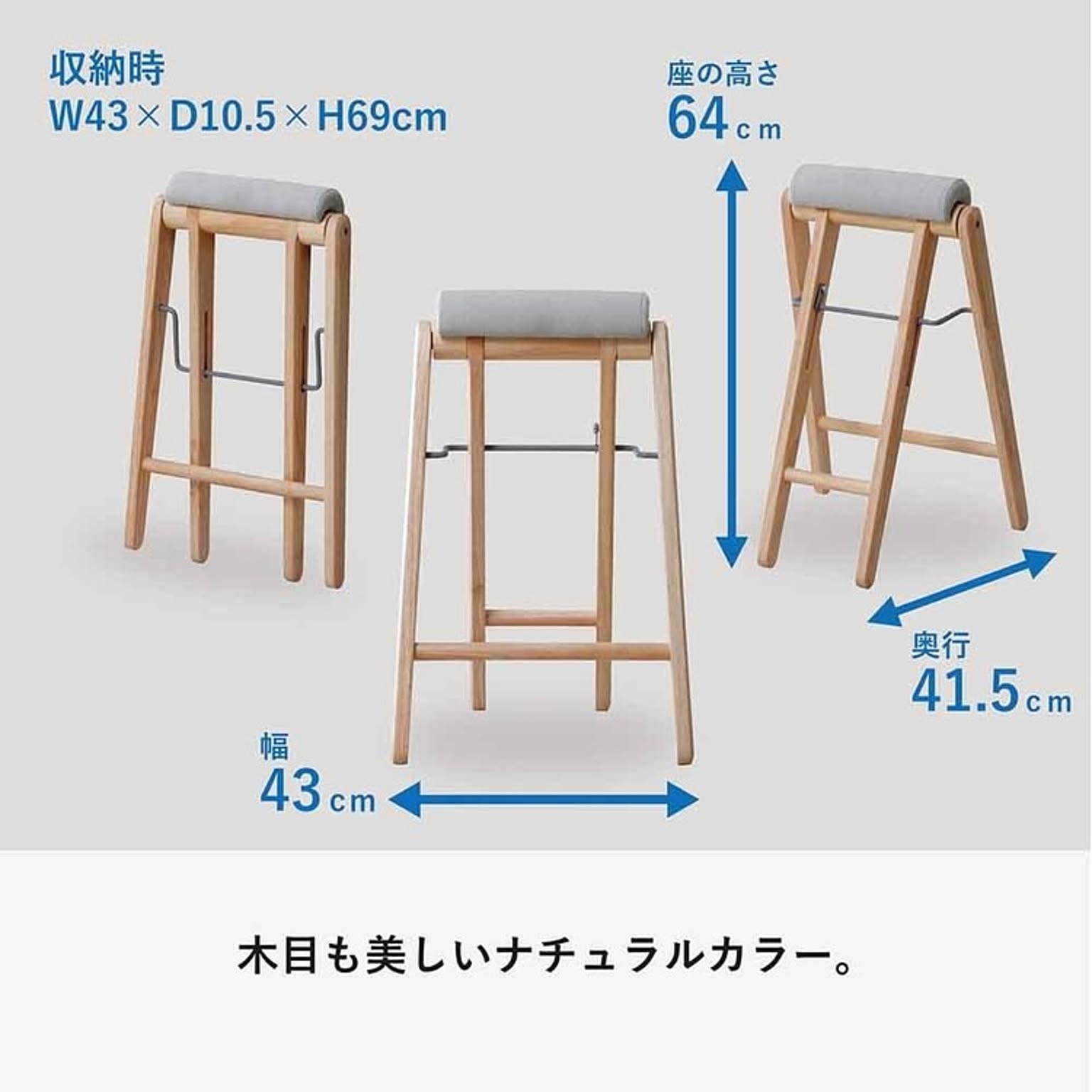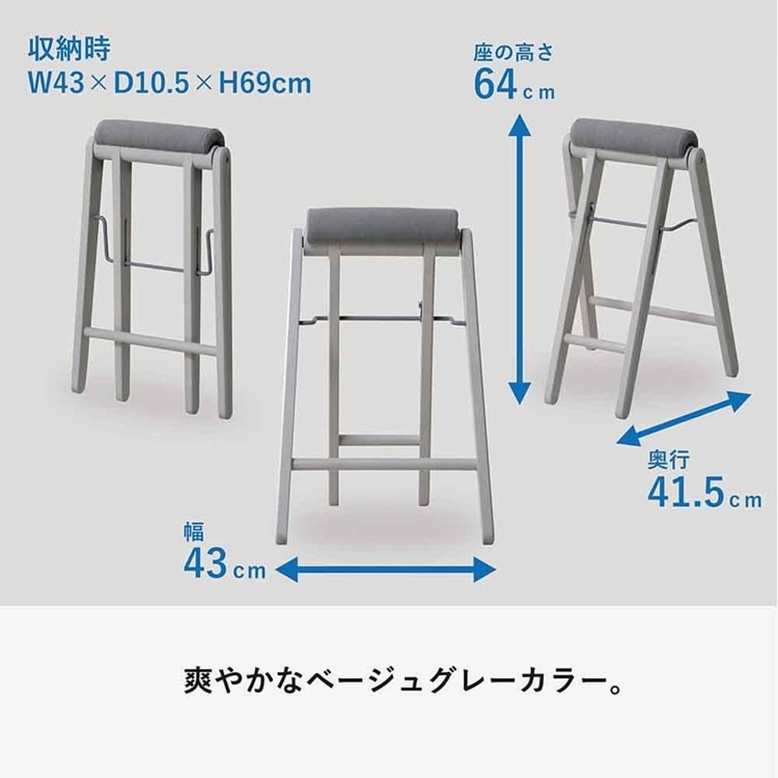 本体外寸:幅約43×奥行約42×高さ約64/座面サイズ:幅約30×奥行約10×高さ約3.5/折り畳み時:幅約43×奥行き約10.5×高さ約69