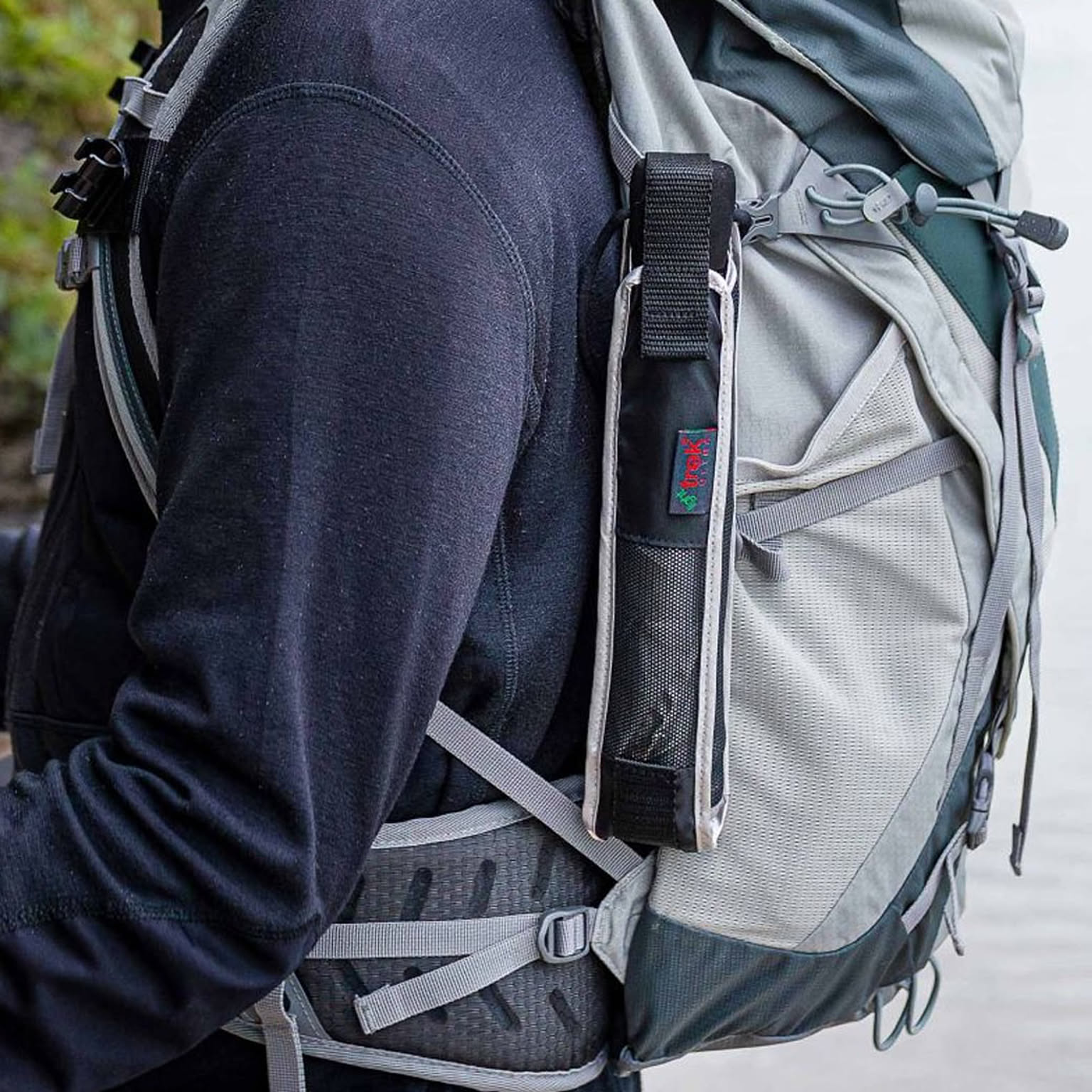専用ケースにはカラビナ付きで、移動時に両手が自由に使えます。