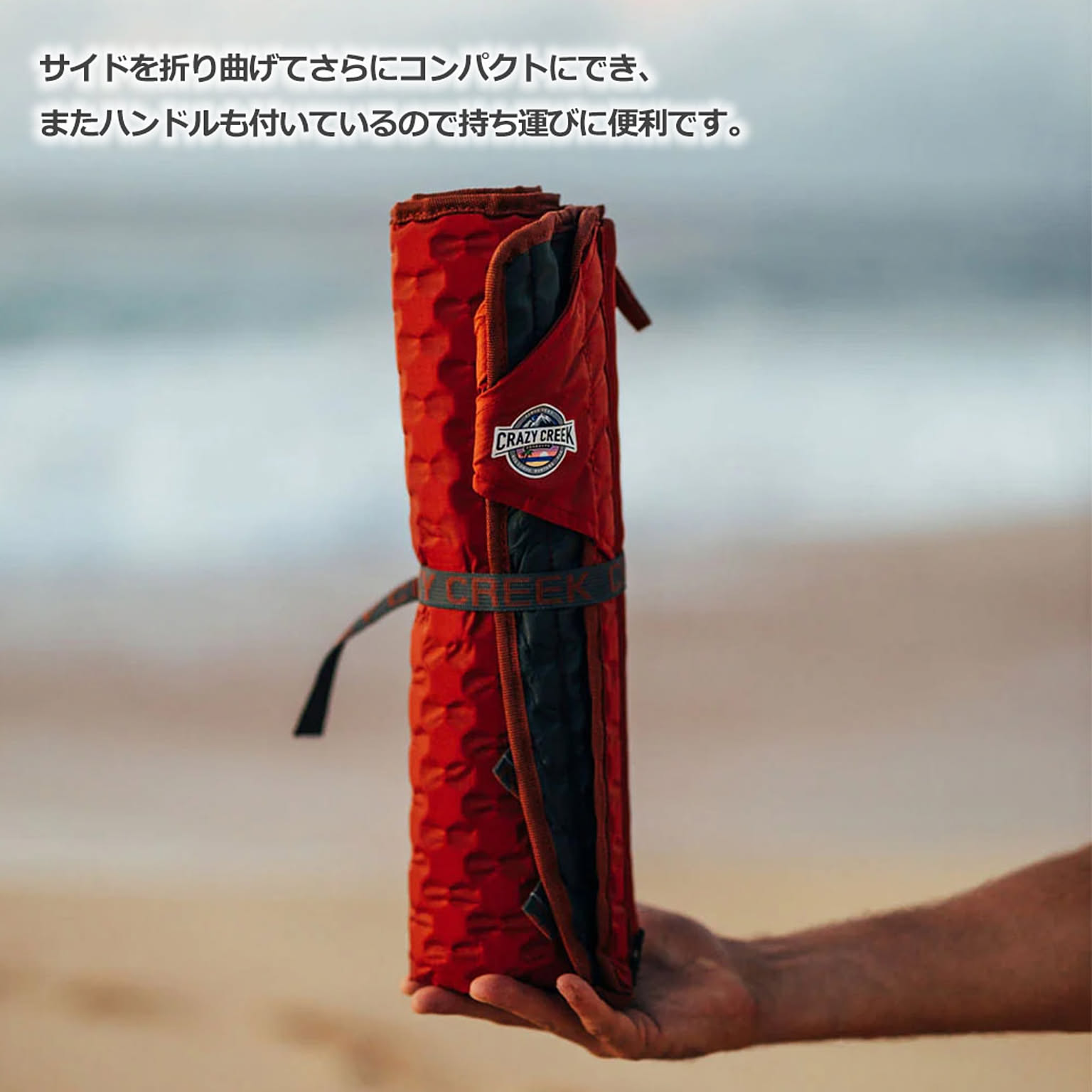 コンパクトに丸めて持運びができ、8mm厚の高密度EVAフォームを採用することで、快適な座り心地を実現しました。