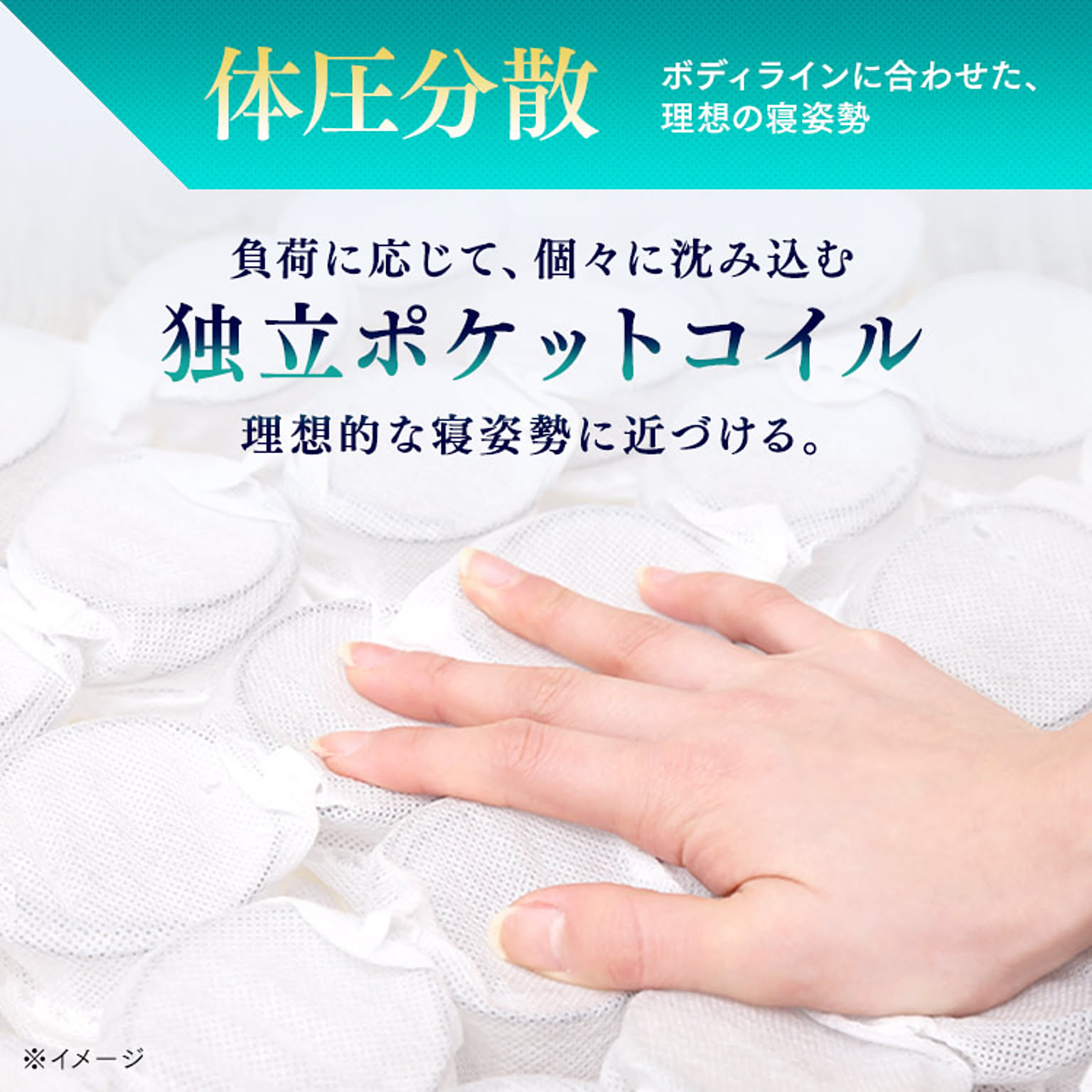 コイルが不織布の小さな袋に1つ1つ包まれ独立しているので、複数の点で身体を支え、体圧分散性に優れています。