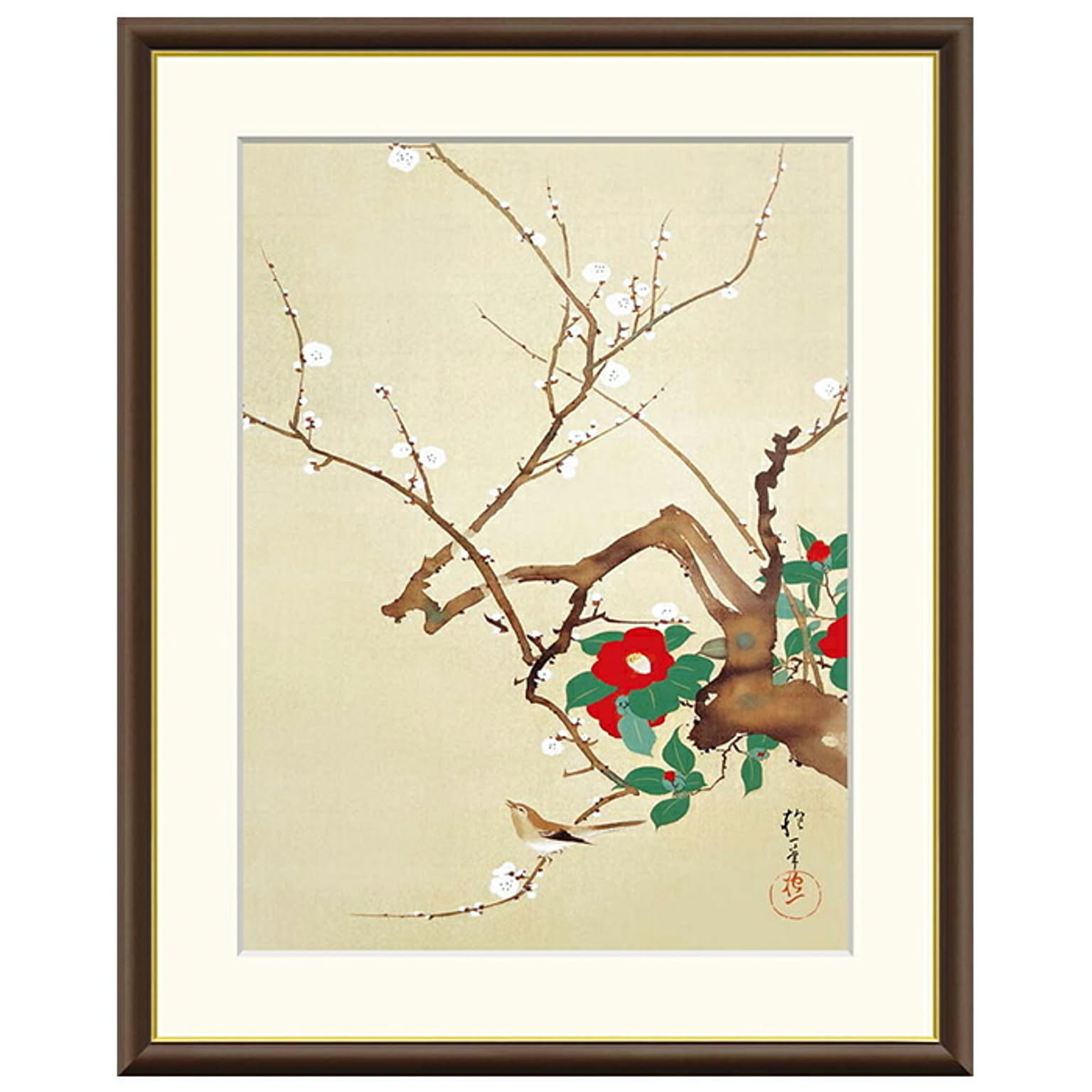 額絵 梅椿に鶯図 酒井抱一 42x34cm 三幸