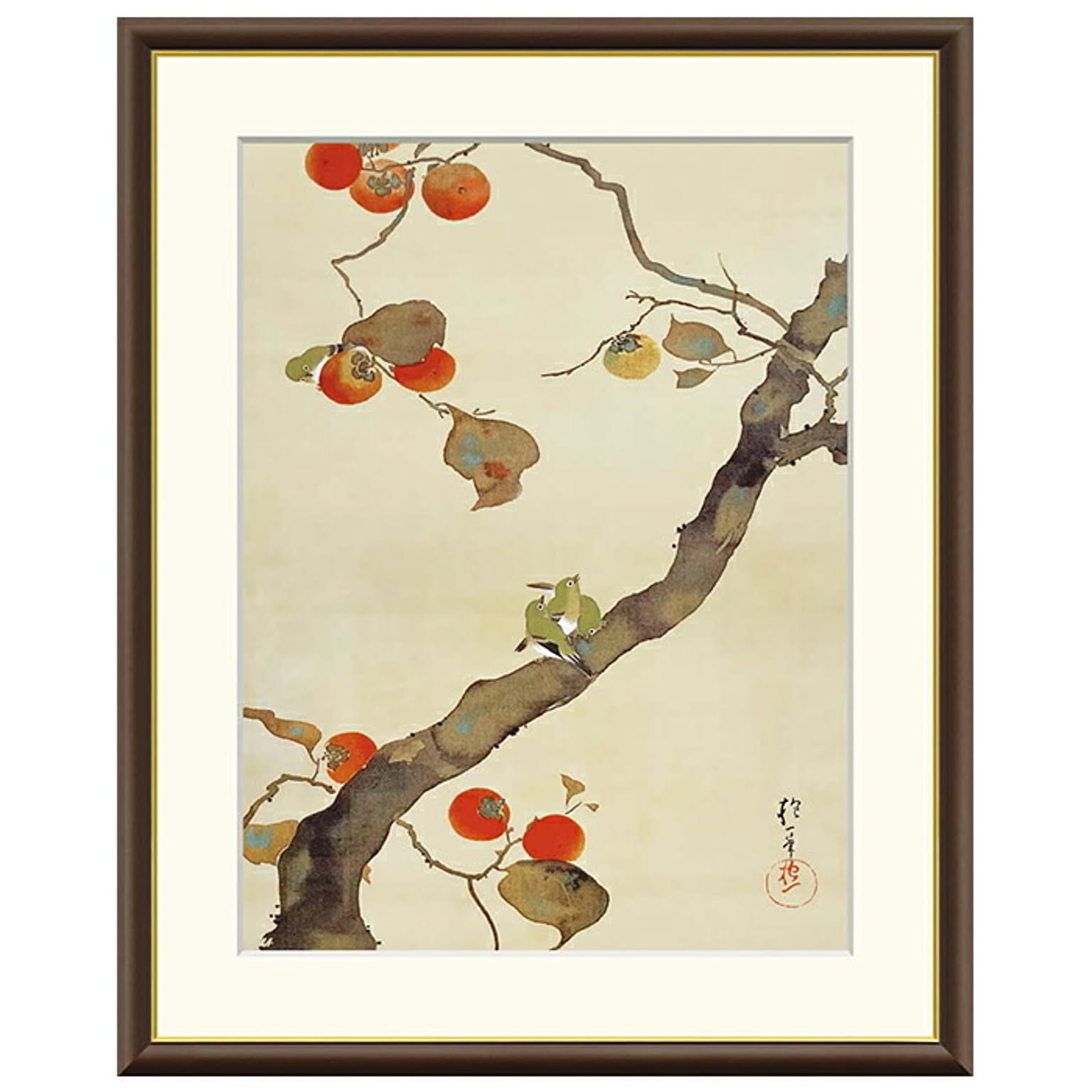 額絵 柿に小禽図 酒井抱一 42x34cm 三幸