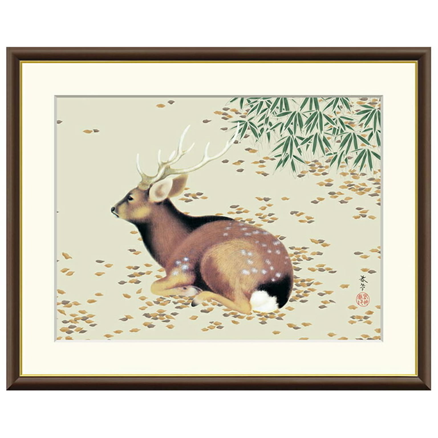 額絵 秋林遊鹿 菱田春草 42x34cm 三幸