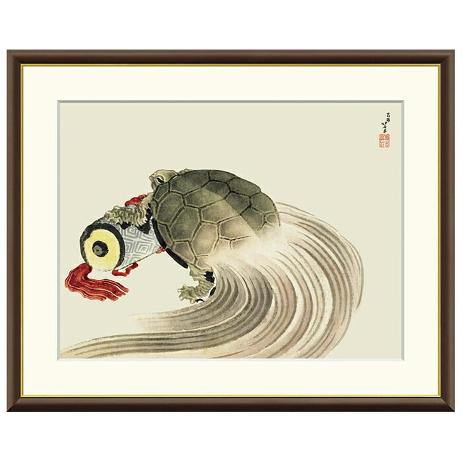 額絵 巻物の上で休む亀 葛飾北斎 42x34cm 三幸