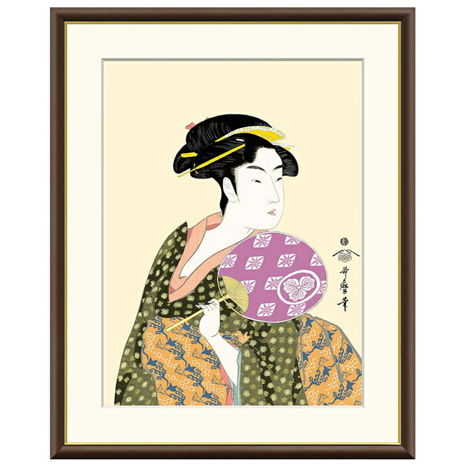 額絵 団扇を持つおひさ 喜多川歌麿 42x34cm 三幸