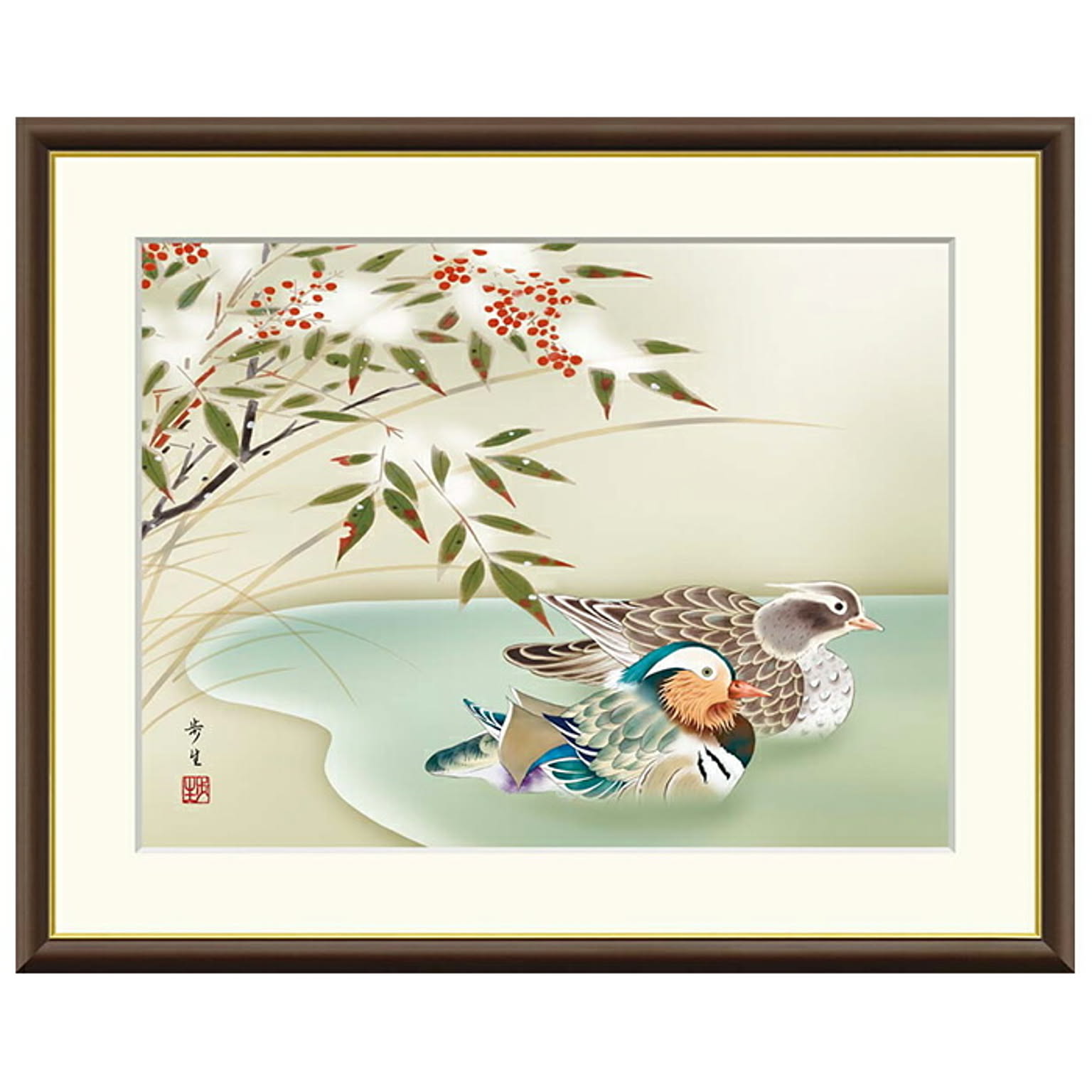 額絵 南天に鴛鴦 北山歩生 42x34cm 三幸
