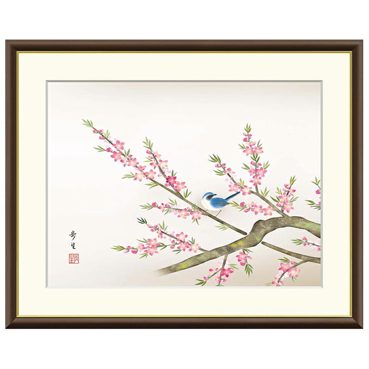 額絵 桃花に小鳥 北山歩生 42x34cm 三幸