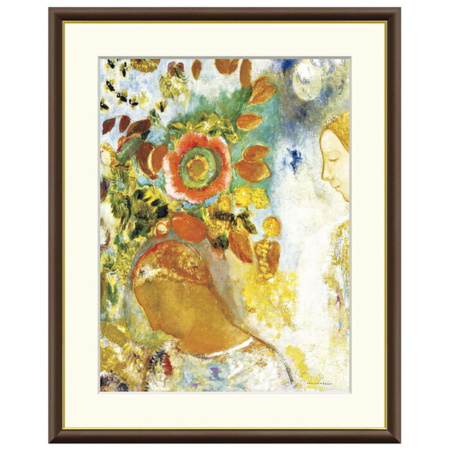 額絵 花に囲まれた二人の少女 オディロン・ルドン 52x42cm 三幸