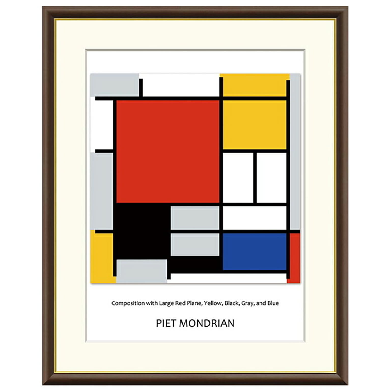 額絵 大きな赤い領域・黄色・黒・灰色・青のコンポジション ピート・モンドリアン 52x42cm 三幸