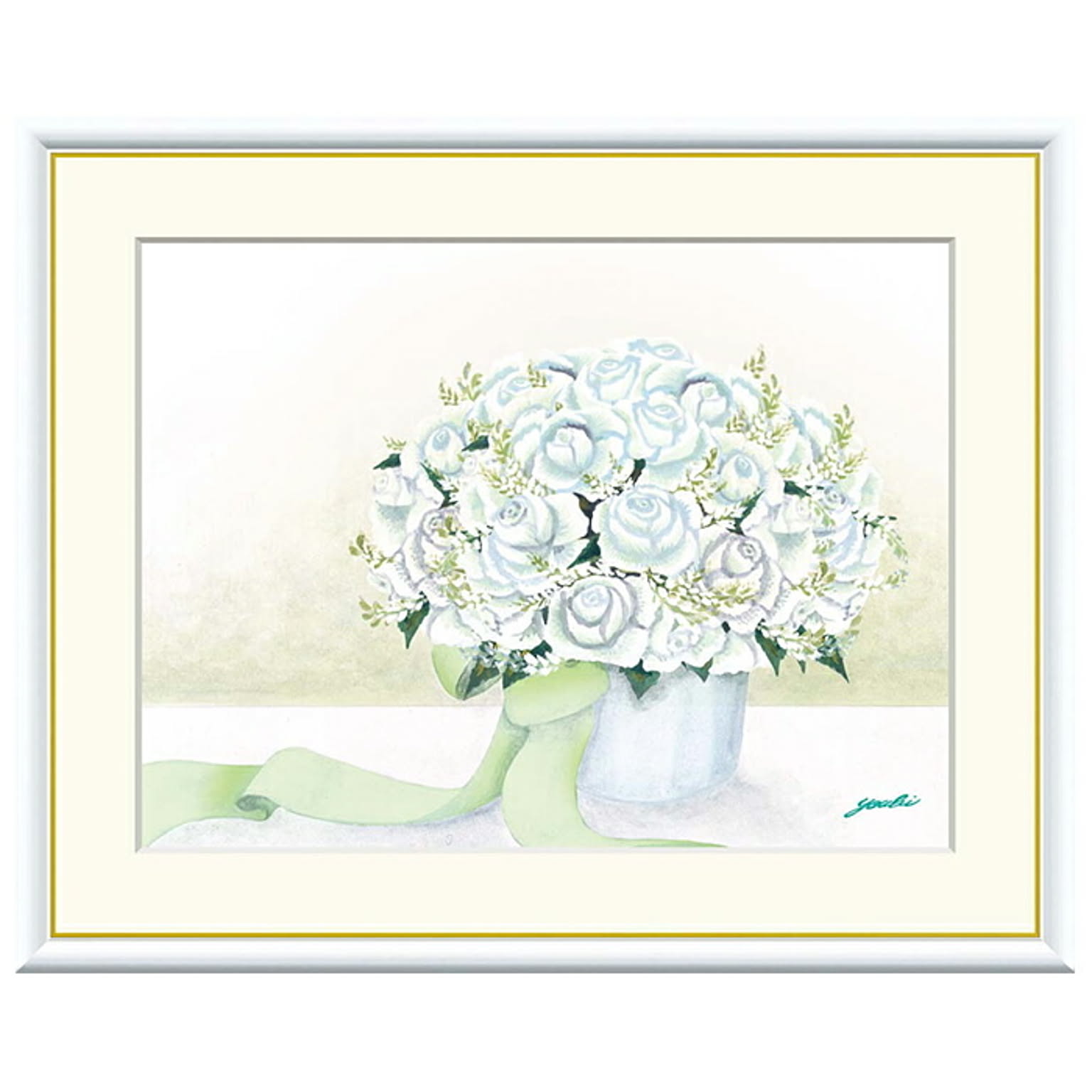 額絵 清楚なホワイトのブーケ 洋美 52x42cm 三幸