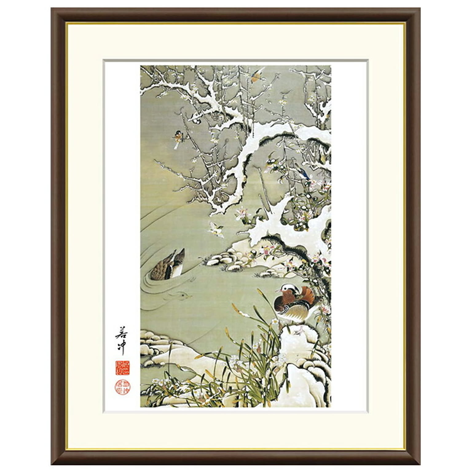 額絵 雪中遊禽図 伊藤若冲 52x42cm 三幸