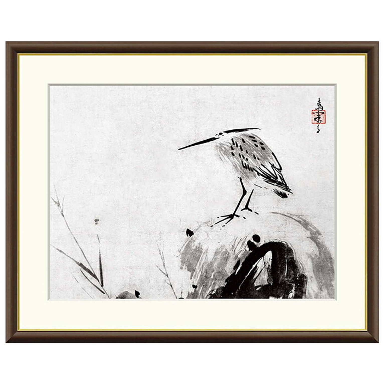 額絵 岩に五位鷺図 雪舟 52x42cm 三幸