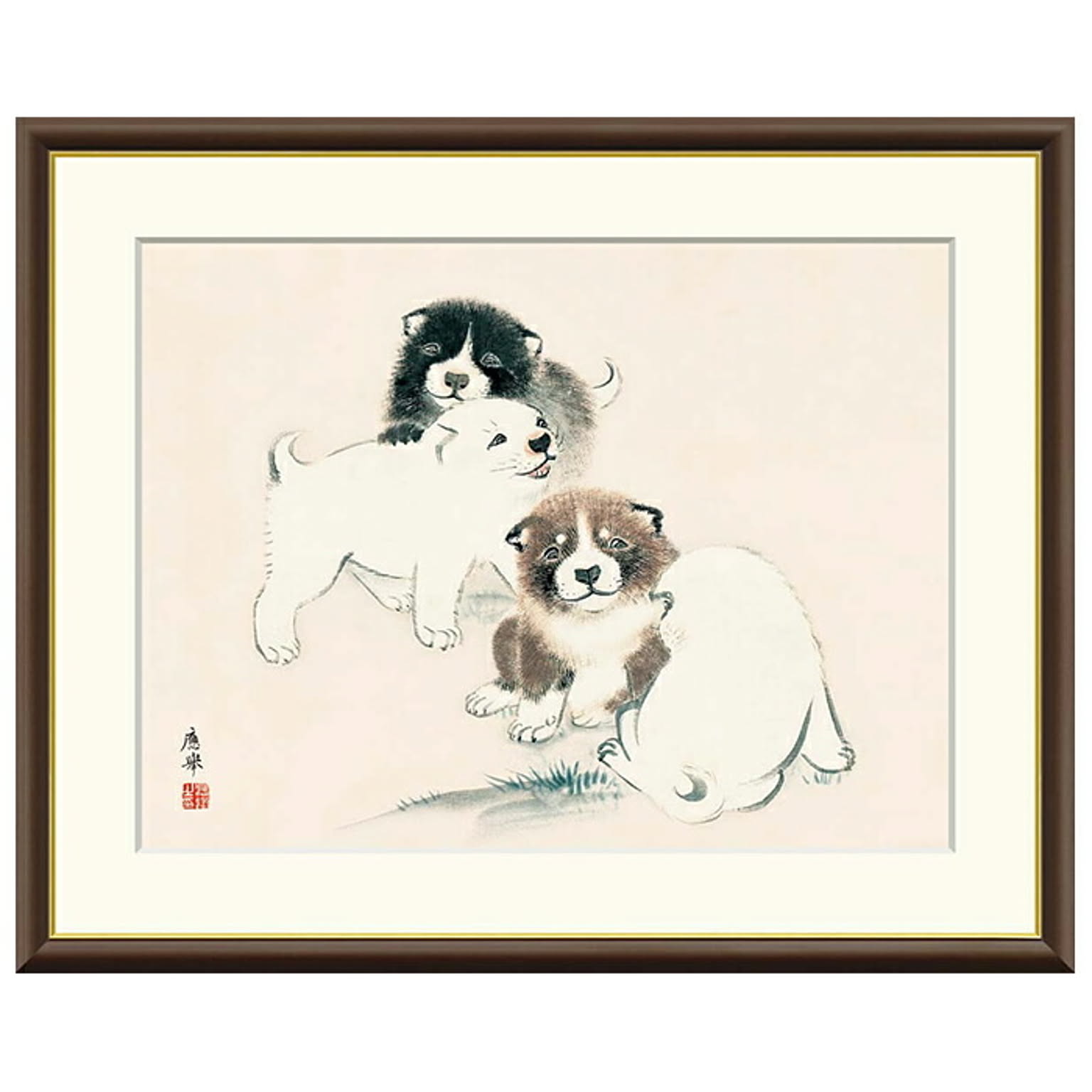 額絵 狗子図 円山応挙 52x42cm 三幸