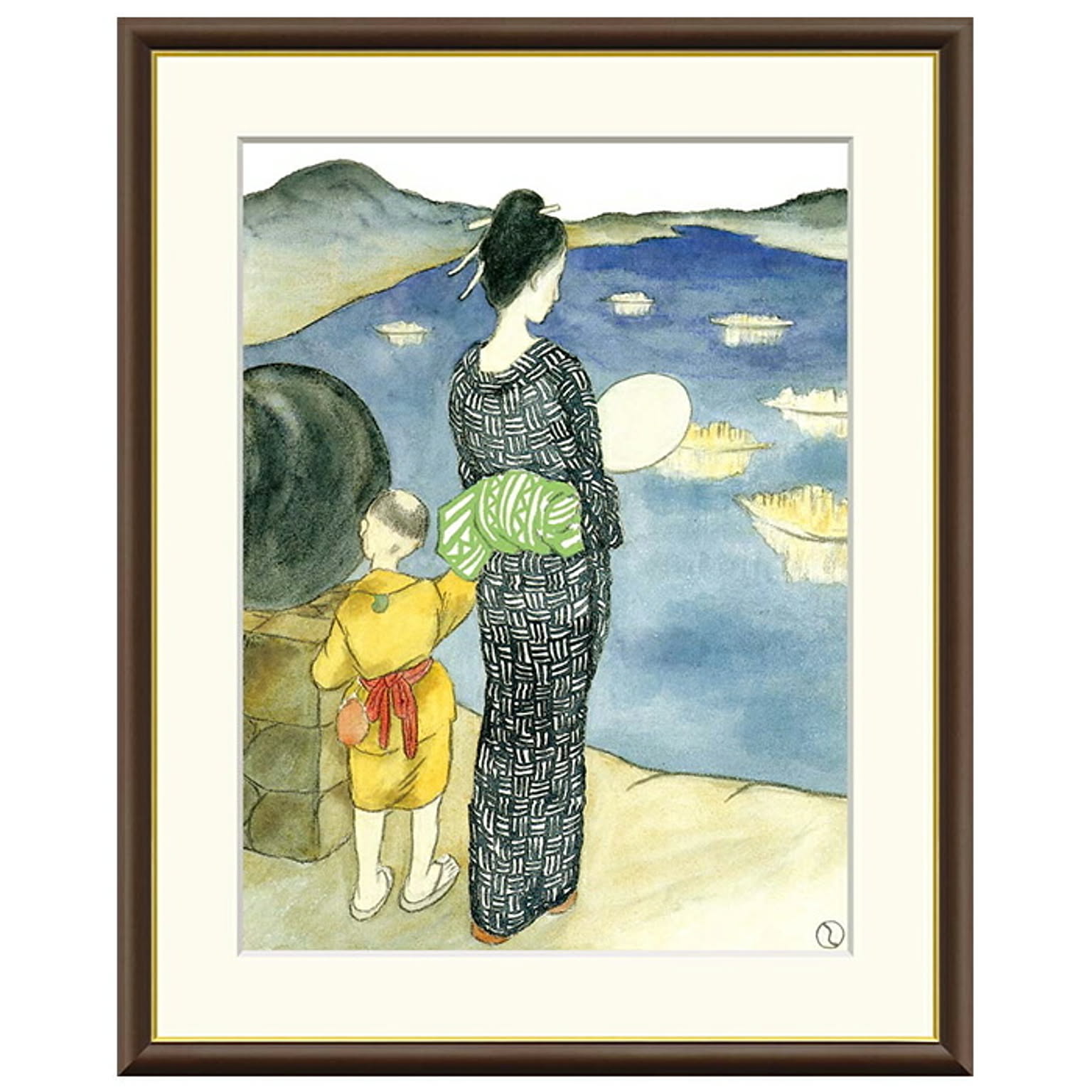 額絵 燈籠流し 竹久夢二 52x42cm 三幸