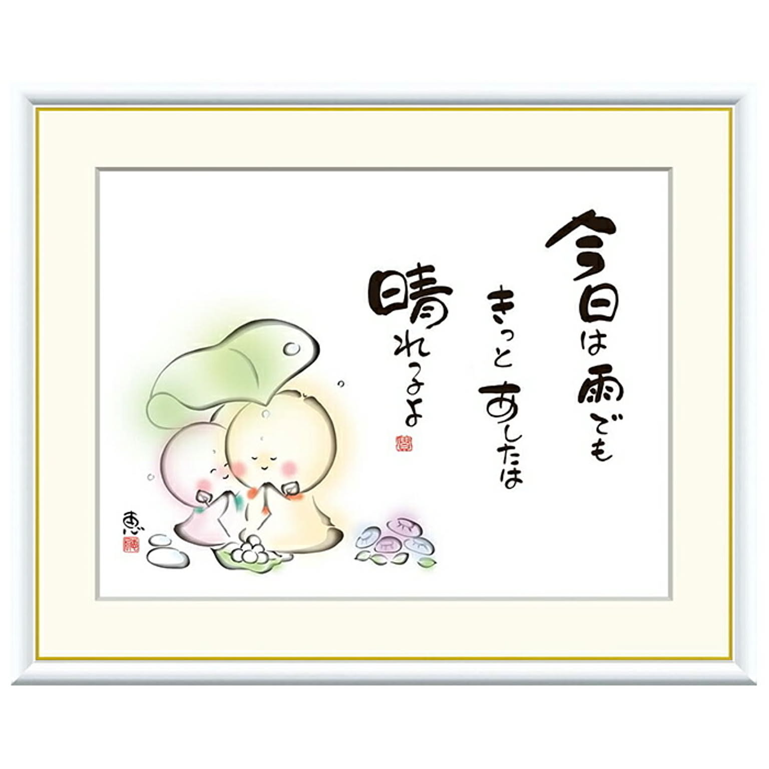 額絵 今日は雨でもきっとあしたは 恵風 52x42cm 三幸