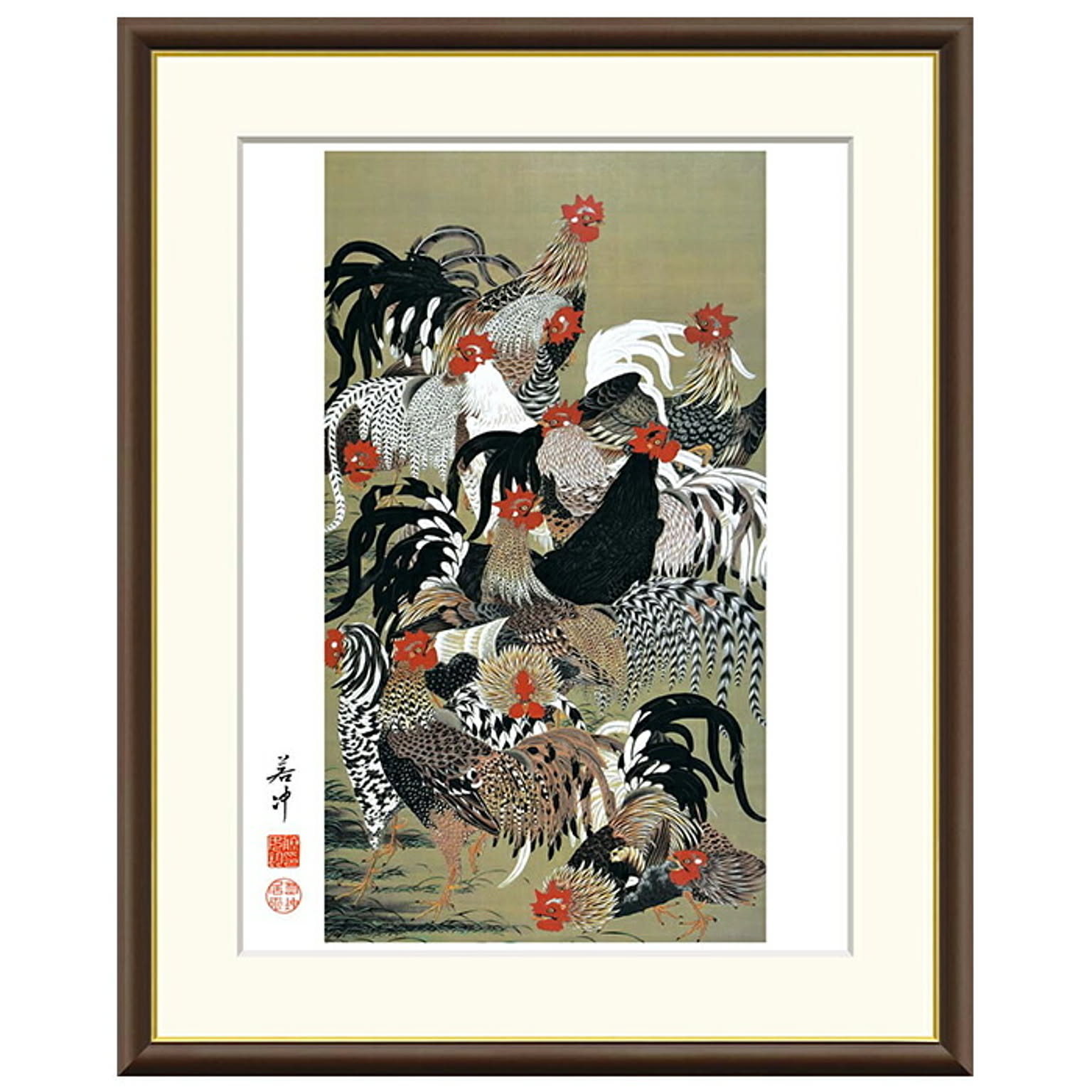 額絵 群鶏図 伊藤若冲 61x49.5cm 三幸