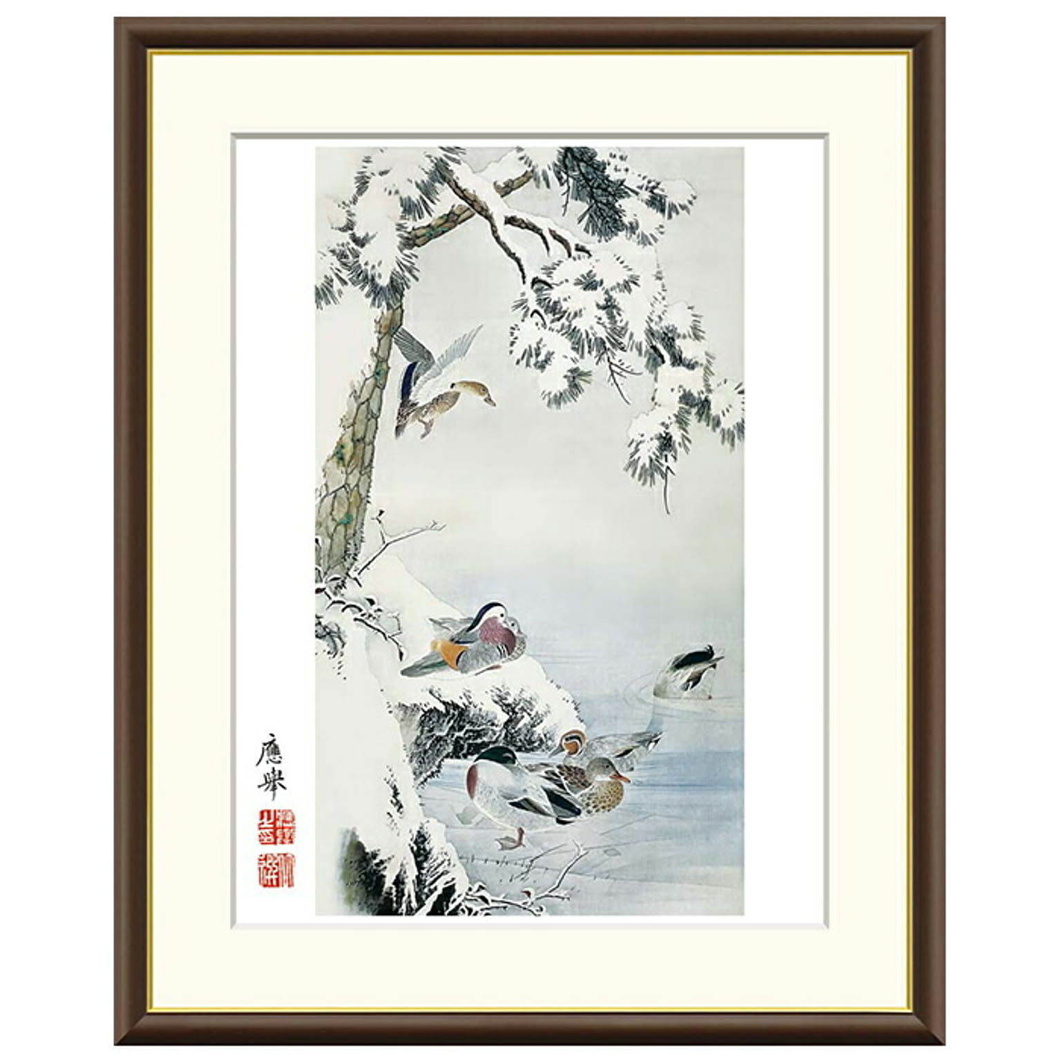 額絵 雪中水禽図 円山応挙 61x49.5cm 三幸