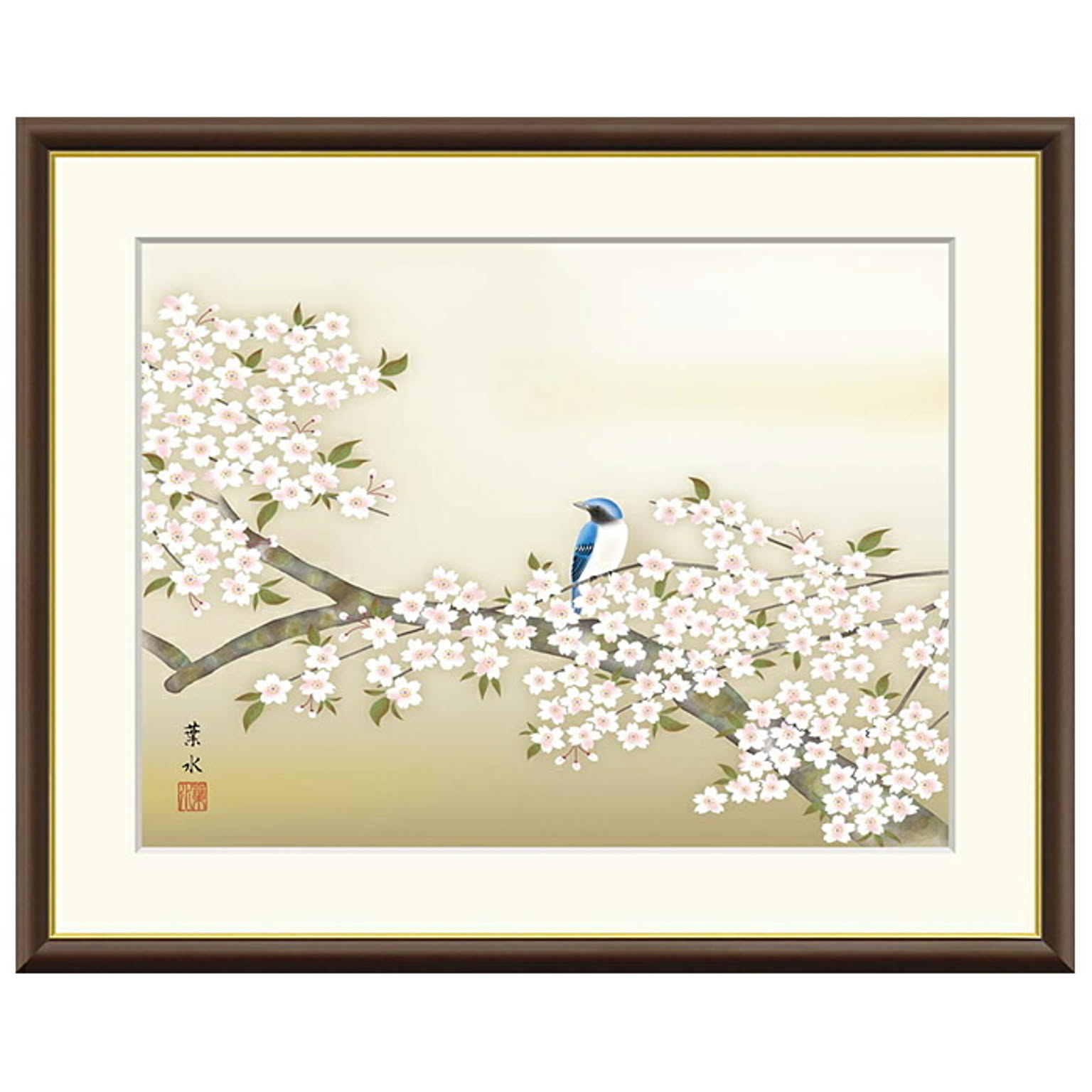 額絵 桜花に小鳥 緒方葉水 61x49.5cm 三幸