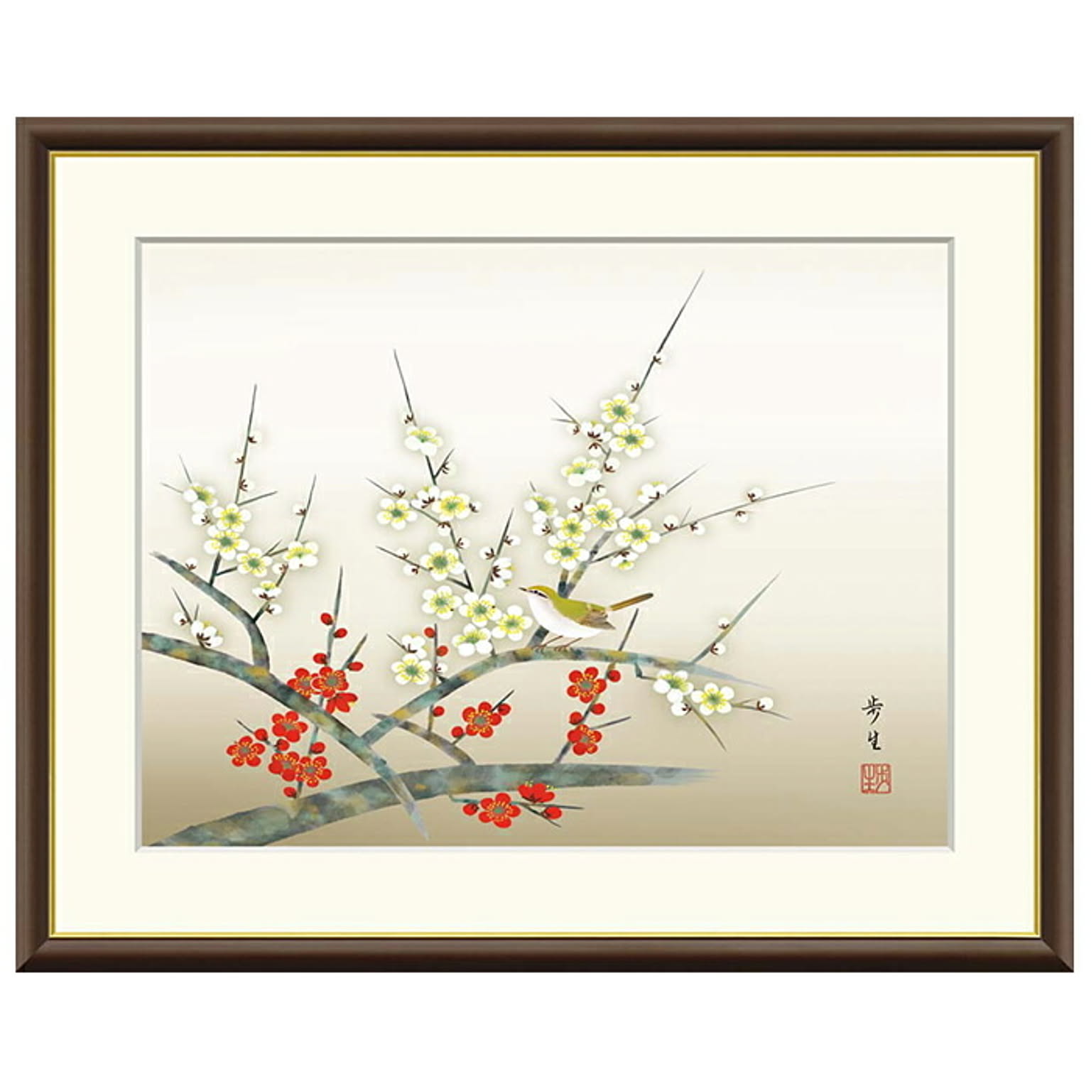 額絵 紅白梅に鶯 北山歩生 61x49.5cm 三幸