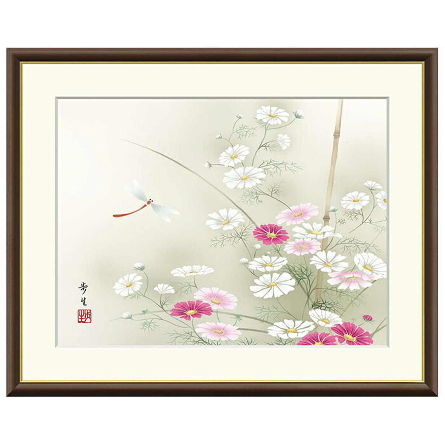 額絵 秋桜に蜻蛉 北山歩生 61x49.5cm 三幸