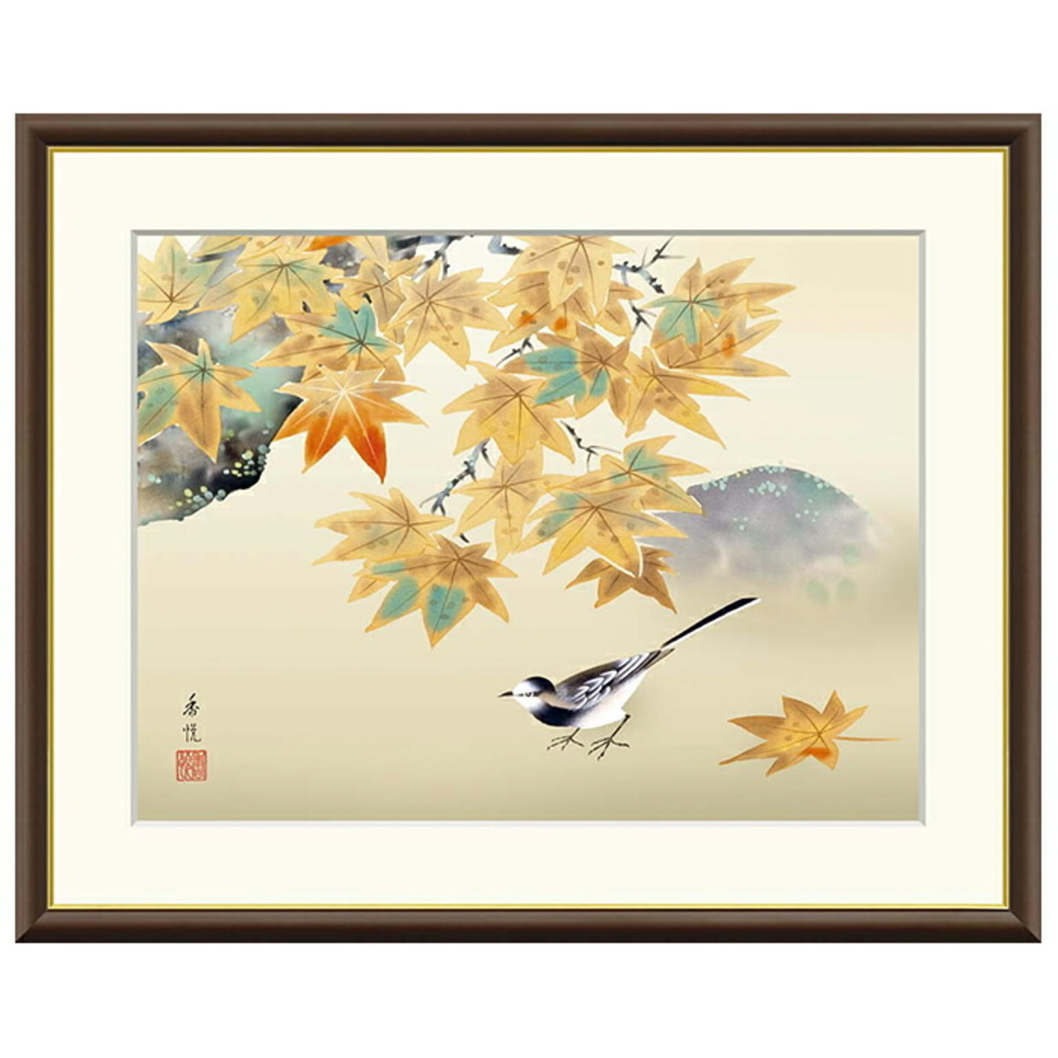 額絵 紅葉に小鳥 西尾香悦 61x49.5cm 三幸