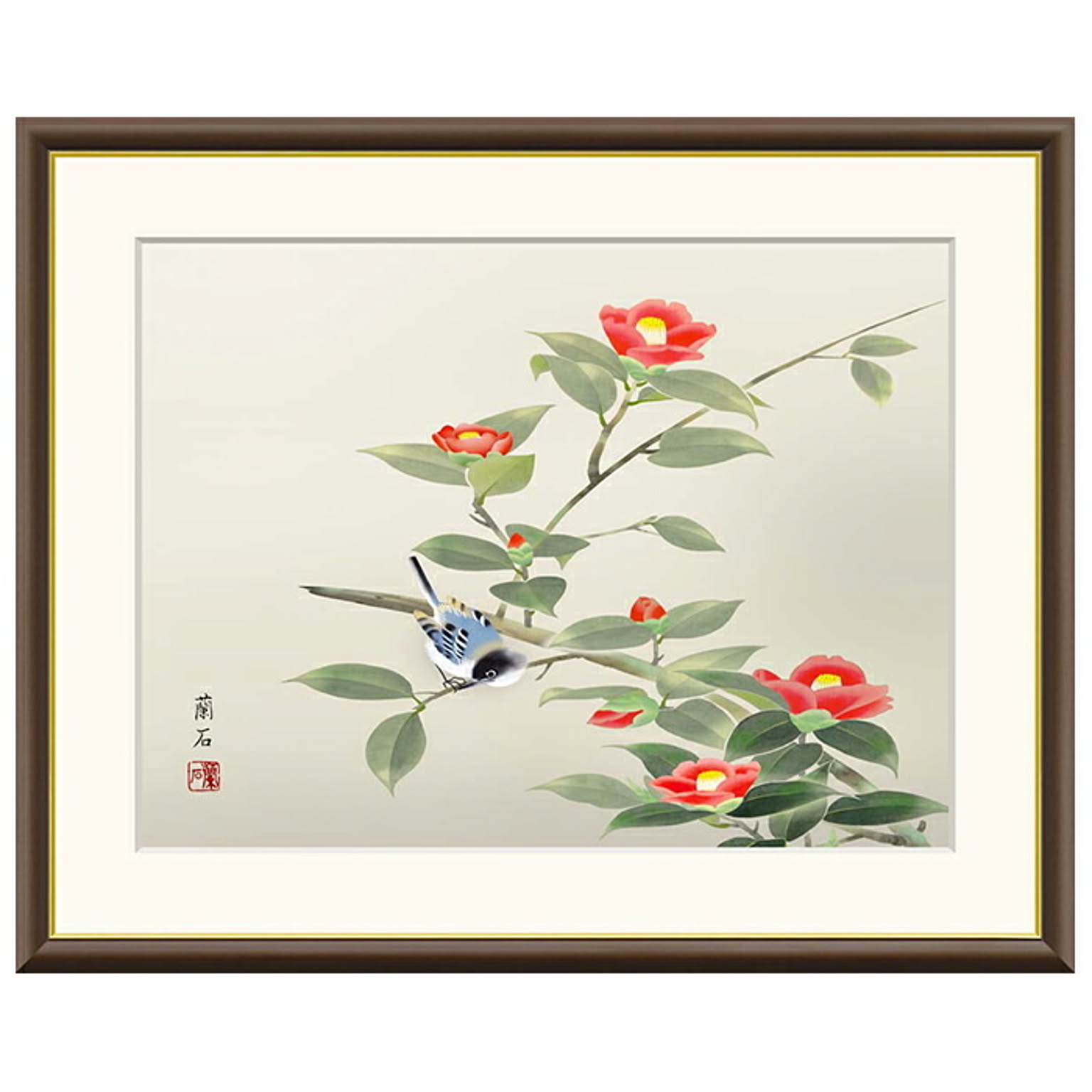 額絵 椿に小鳥 高見蘭石 61x49.5cm 三幸