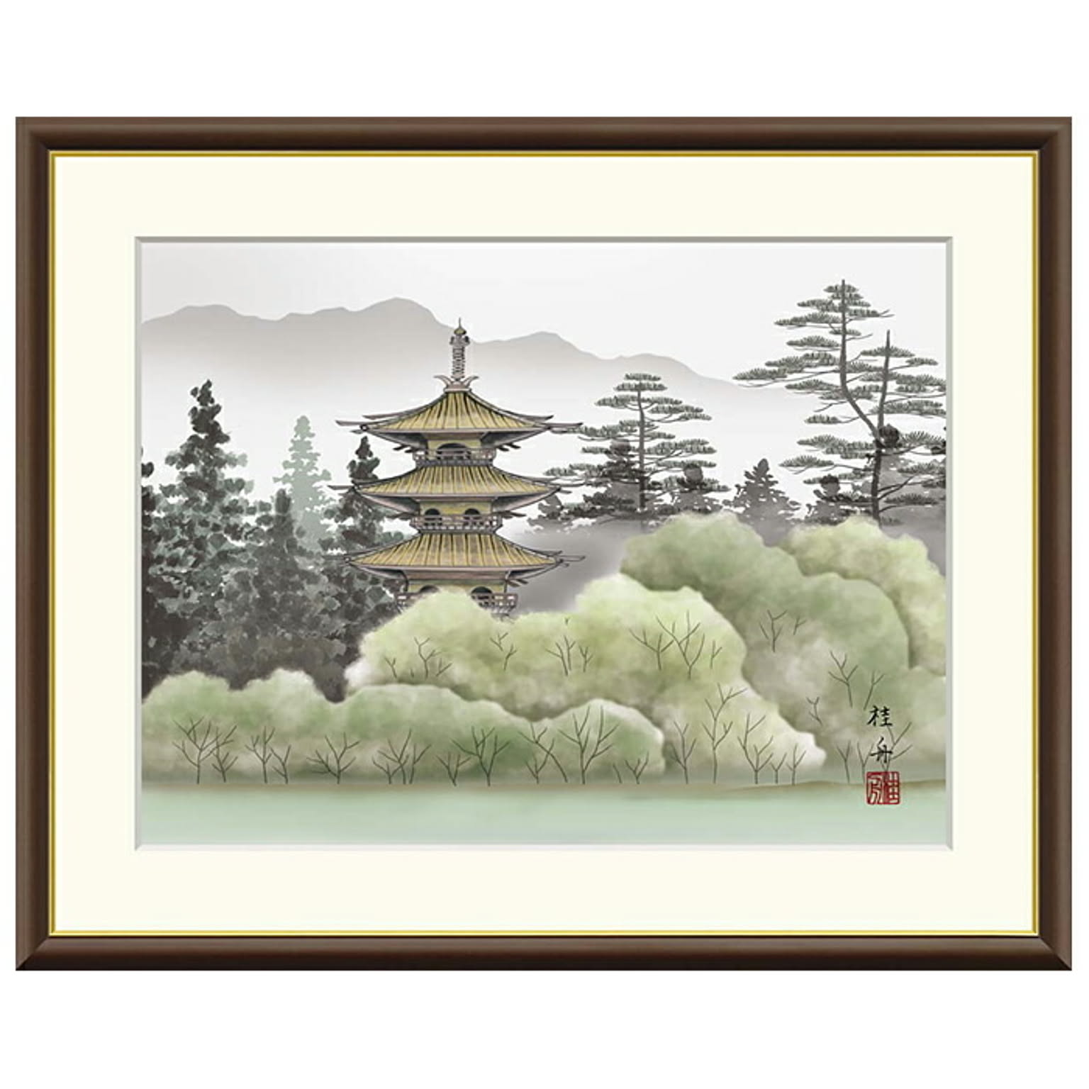 額絵 幽山塔景 長江桂舟 61x49.5cm 三幸