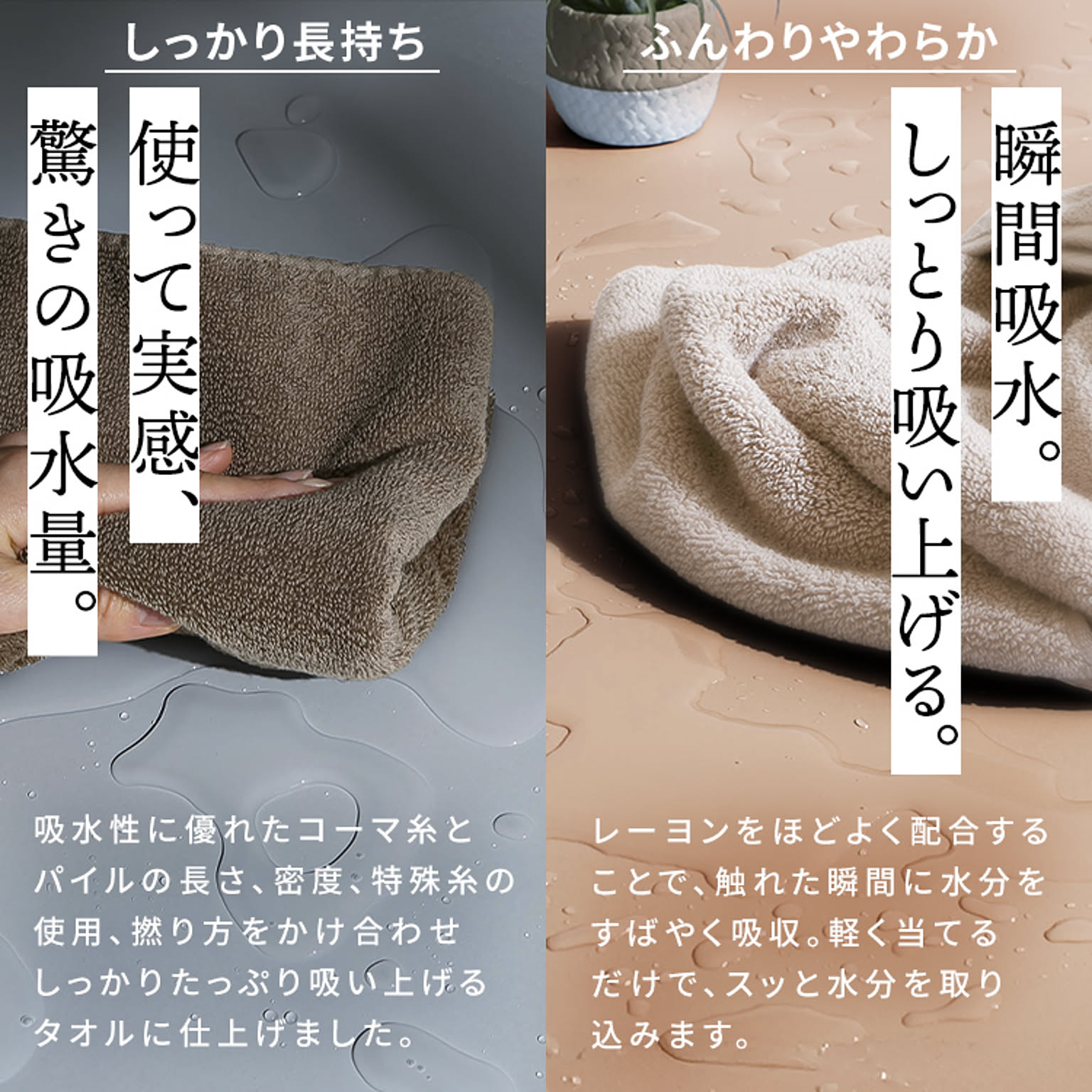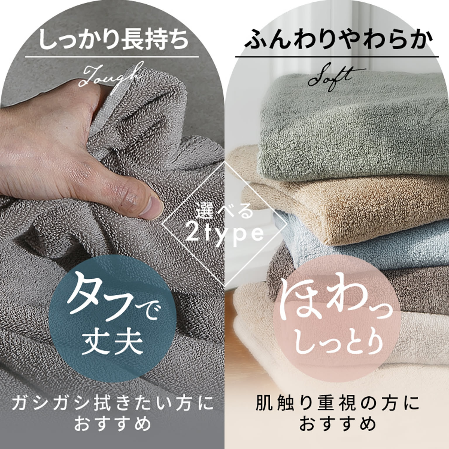 スマートエールのタオルに新シリーズ誕生! 丈夫さと使い心地を両立した『しっかり長持ちタオル』。 摩擦に強いコーマ糸を使用しているので、毎日の洗濯にも負けない丈夫さ。 しっかり拭けて、長く使える安心のタオルです。 ●商品サイズ(cm) 幅約60×奥行約120 ●商品質量(1枚あたり) 約338g ●素材 綿100%