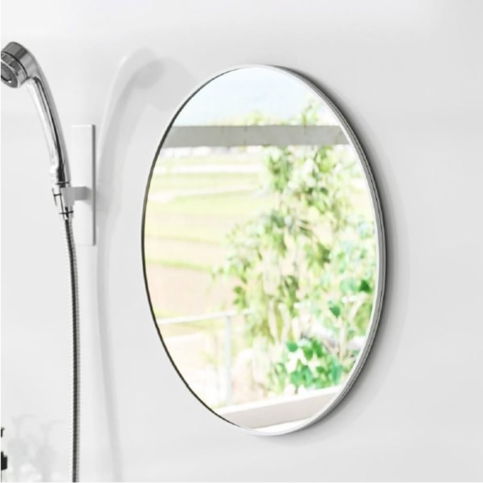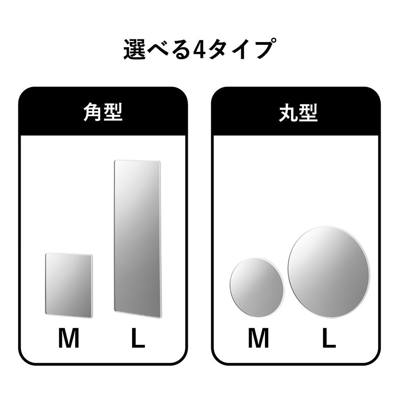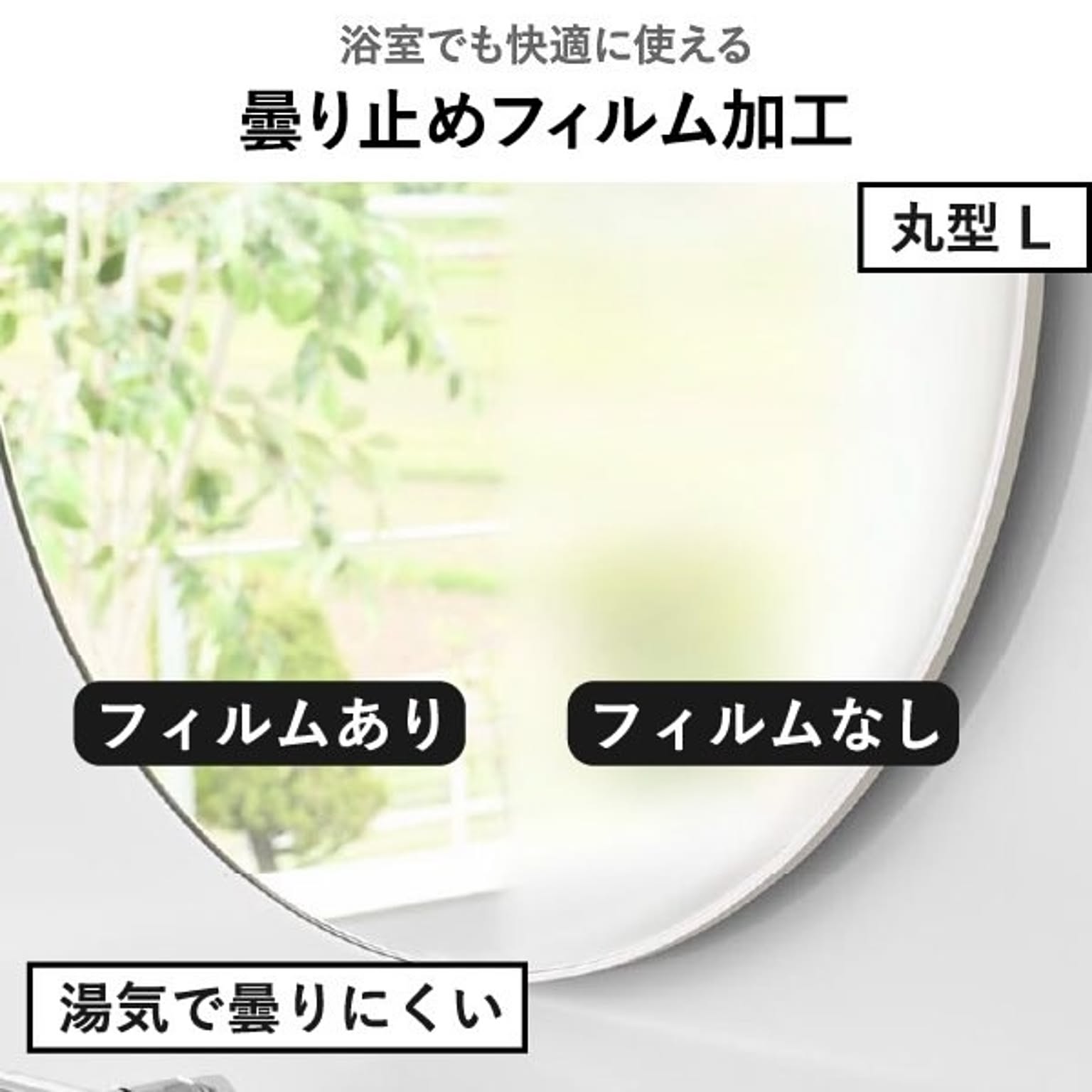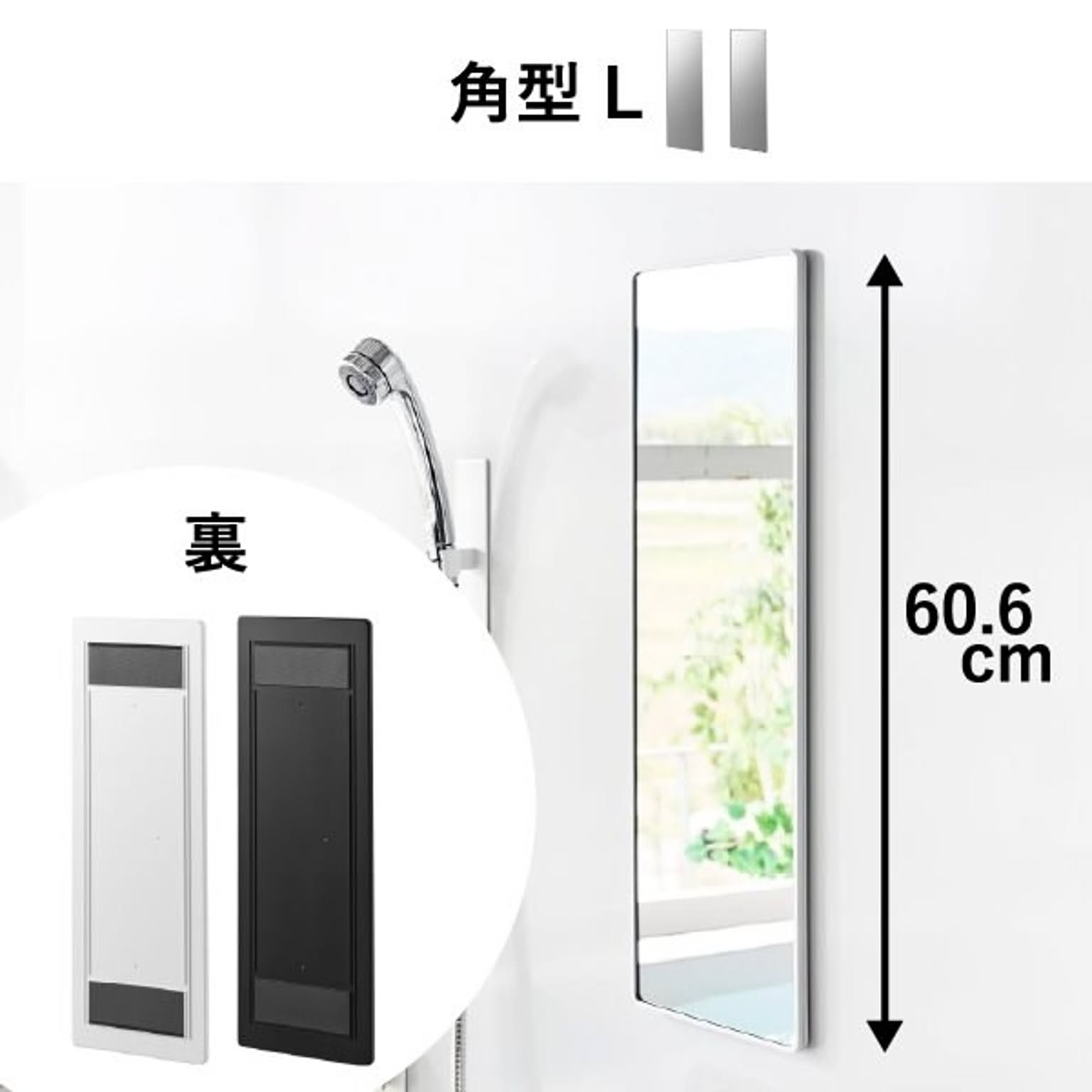浴室壁面に設置できる、towerシリーズのおしゃれなマグネットバスミラーです。背面の強力な磁石で、風呂鏡をしっかり固定できます。マグネットバスミラーには滑り止めが付いているため、ずり落ちにくくストレスフリー。風呂鏡は、落としても割れにくい樹脂製です。ガラスミラーに比べて衝撃に強く、割れにくいのが特徴。万が一破損しても飛散しにくく、ケガのリスクが低いため、小さなお子様のいるご家庭でも安心してご使用いただける風呂鏡です。厚さは6mmと、薄手の樹脂ミラーに比べて歪みが出にくく、映りが安定している点もポイントです。バスルームの雰囲気に合わせて、角型と丸型の2種類からマグネットバスミラーのデザインをお選びいただけます。風呂鏡のサイズは、それぞれMサイズとLサイズをご用意しました。マグネットバスミラーには曇り止めフィルム加工が施されており、浴室内でも快適にご使用いただけます。風呂鏡のフレームに指を掛けて簡単に取り外せるので、お掃除の際の移動もスムーズ。日常的に使いやすいよう設計されたマグネットバスミラーで、いつでも清潔なバスルームを保てます。モノトーンのシンプルなデザインも魅力。角型の風呂鏡は洗練された印象を与える定番デザイン、丸型の風呂鏡は柔らかくあたたかみのあるデザインです。ガラスのような見た目でありながら割れにくく、浴室に適したマグネットバスミラー。山崎実業 タワーシリーズの割れにくい姿見や壁掛け全身鏡をお探しの方にもおすすめです。機能性とデザイン性を兼ね備えたマグネットバスミラーで、上質なバスタイムを。