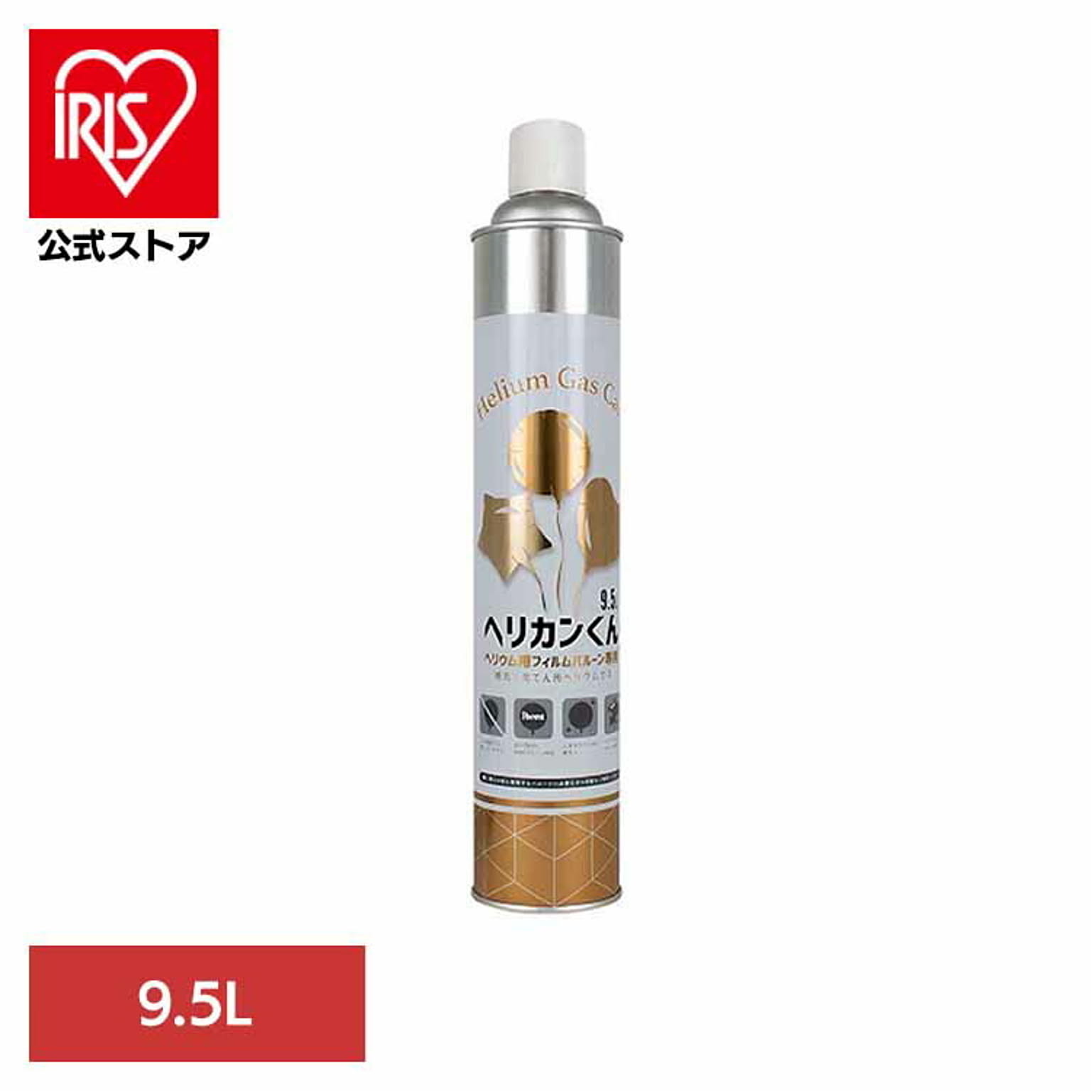 ヘリウムバルーンへ注入可能なエアゾール缶タイプのヘリウムガス。 当商品1缶で、14〜15インチサイズのヘリウムバルーン1枚を膨らませることが可能です。 ●商品サイズ(cm) 幅約9×奥行約9×高さ約45 ●商品重量 約0.05kg ●材質 缶:スチール キャップ・ボタン:PE チューブ:PP