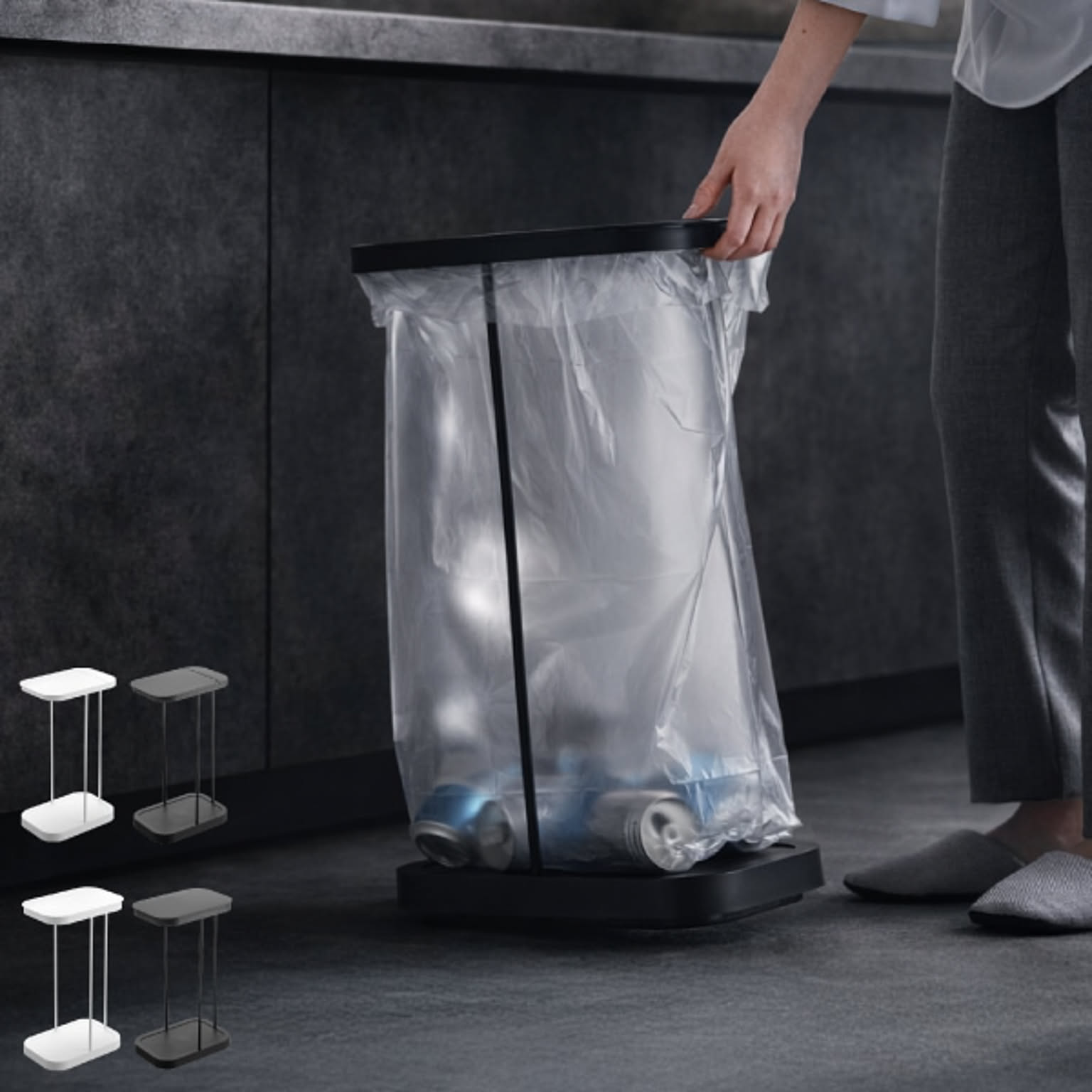 「分別ゴミ袋ホルダー LUCE( ルーチェ )」は、フタと3本のスチールフレームで作られた究極のゴミ箱。
