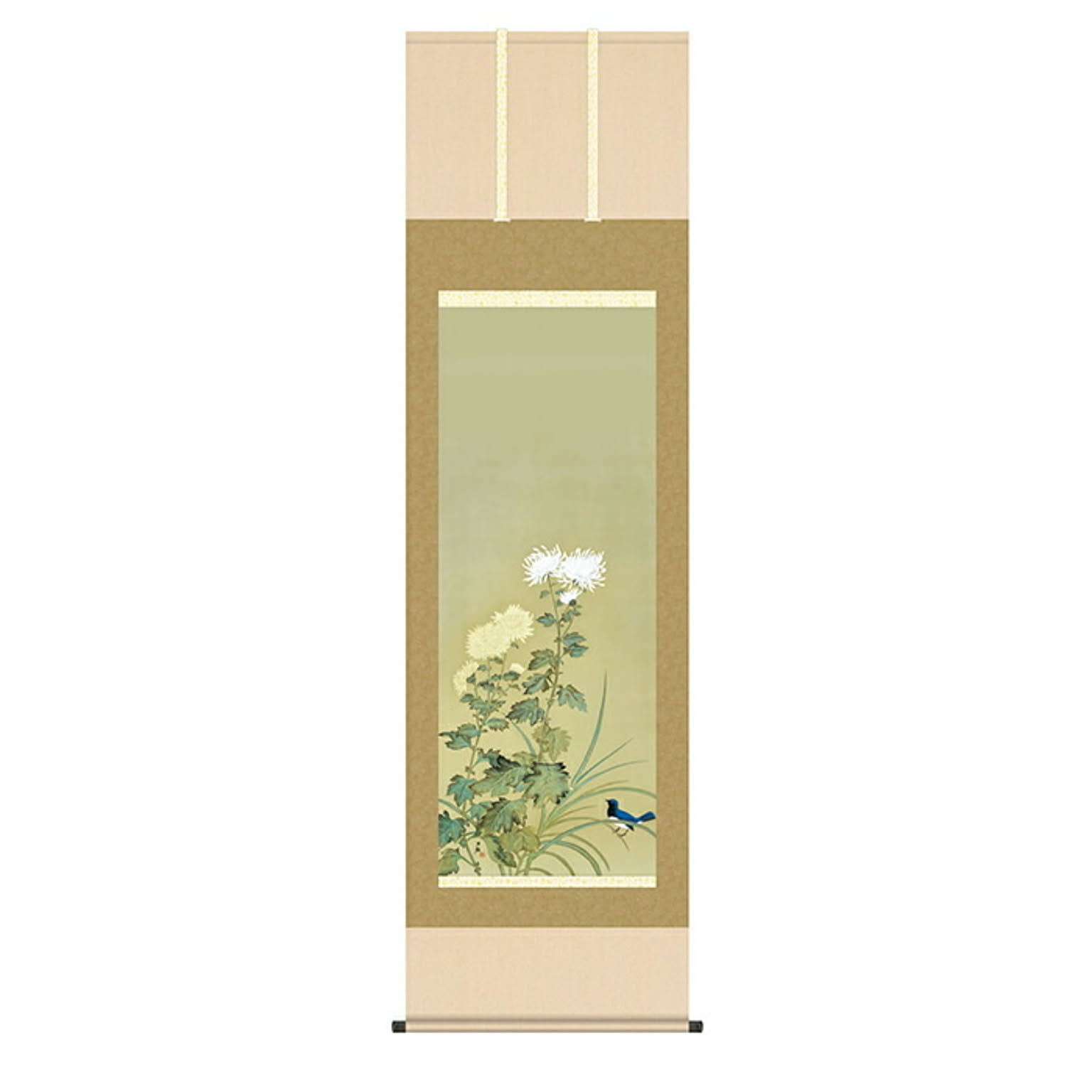 掛け軸 菊花小禽図 横山大観 54.5x190cm 三幸
