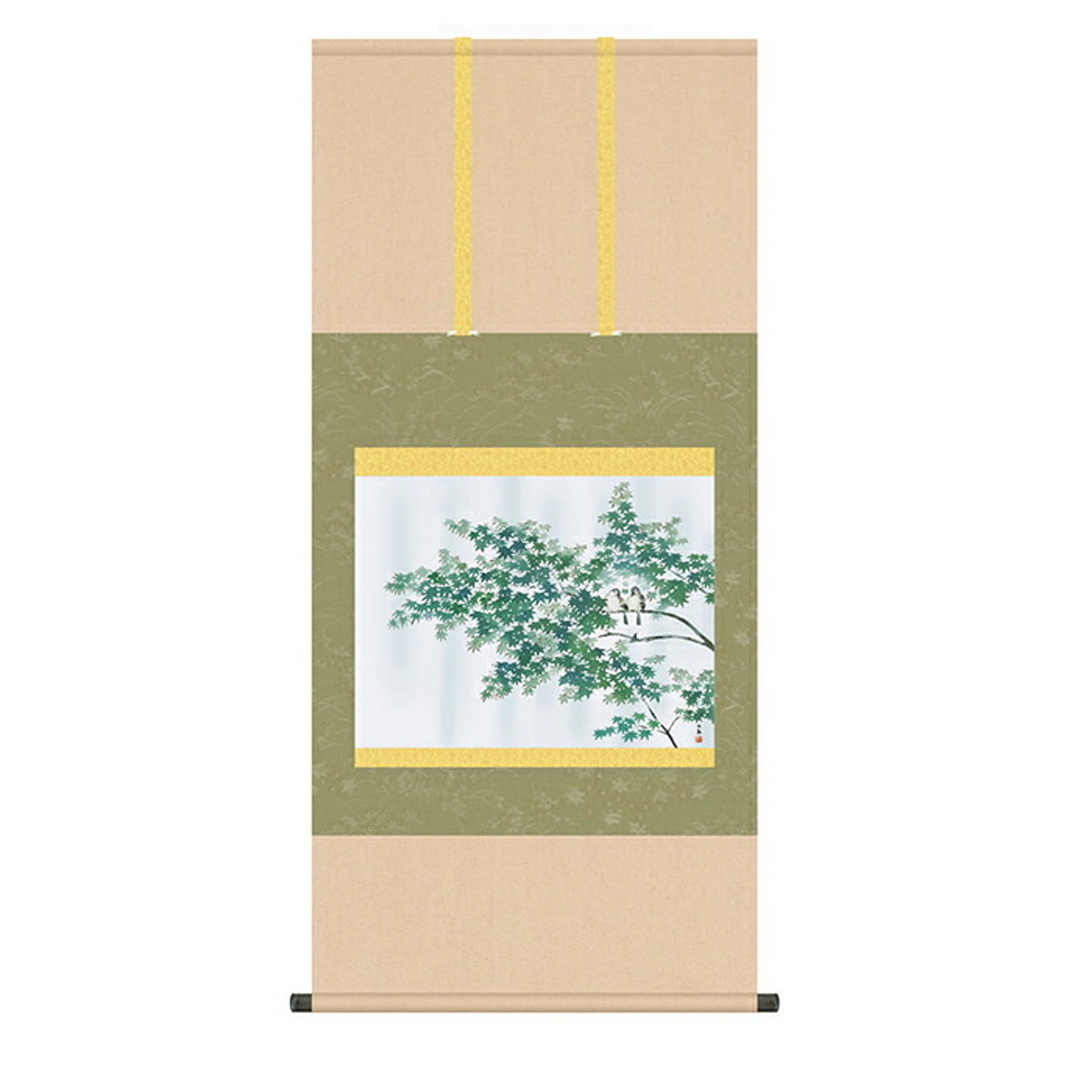 掛け軸 緑雨 横山大観 54.5x115cm 三幸