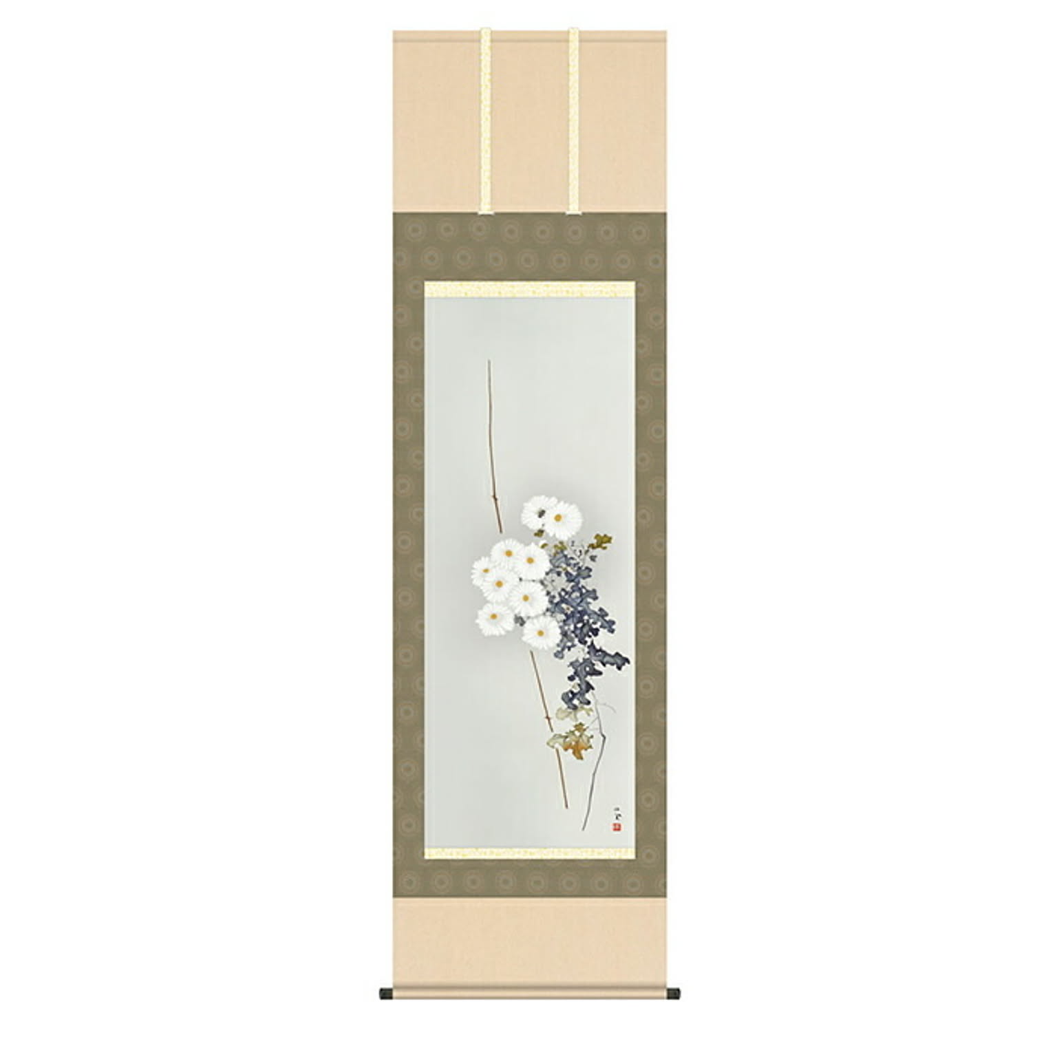 掛け軸 白菊 竹内栖鳳 54.5x190cm 三幸