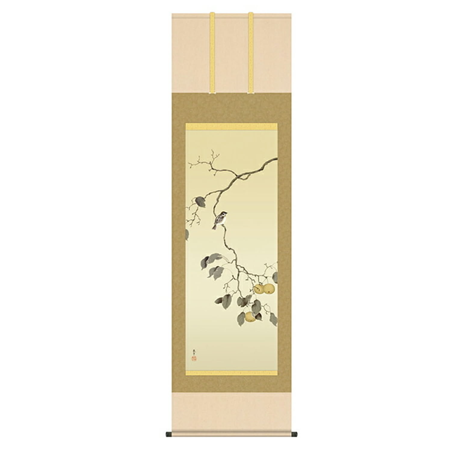 掛け軸 梨に雀 菱田春草 54.5x190cm 三幸