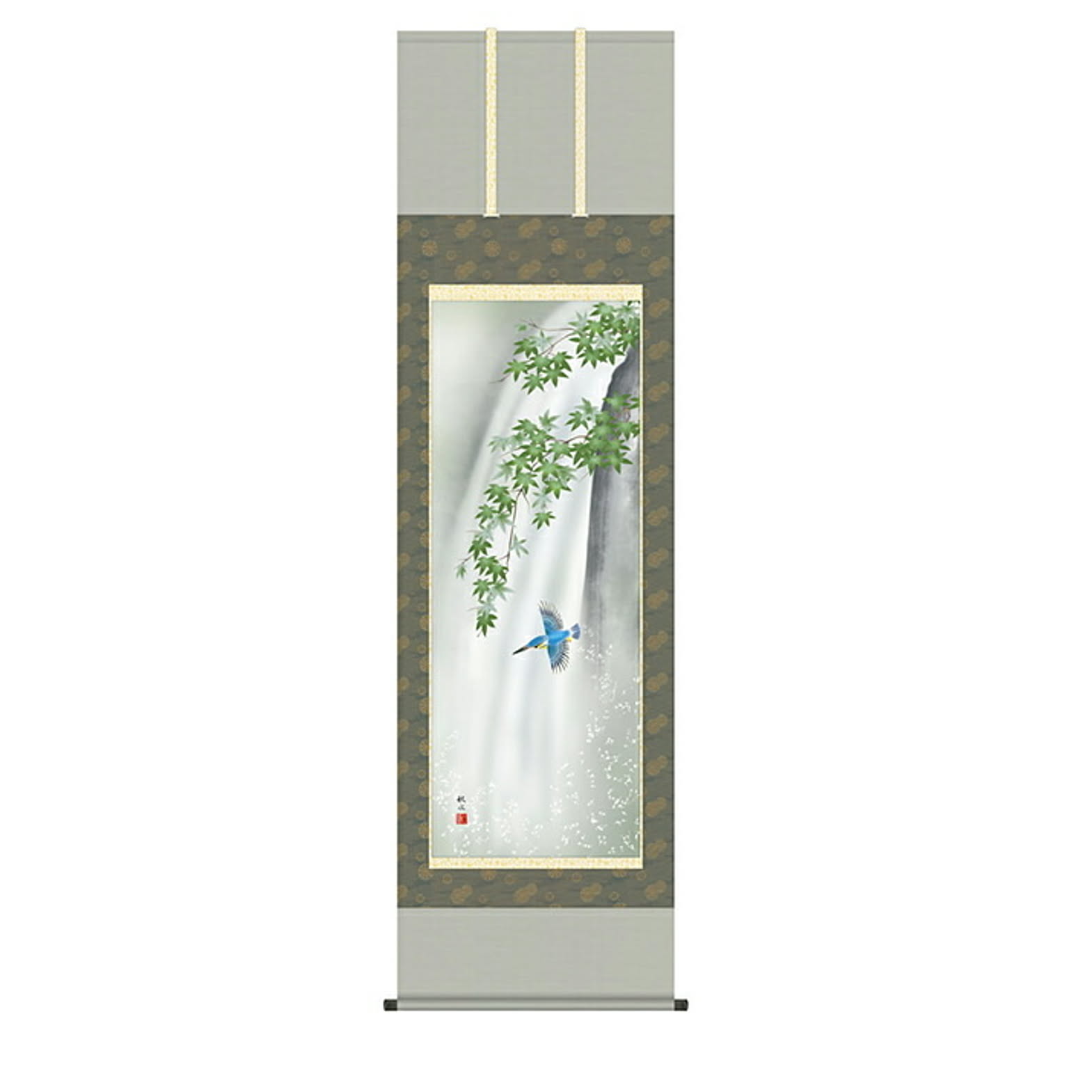 掛け軸 楓にかわせみ 浮田秋水 54.5x190cm 三幸